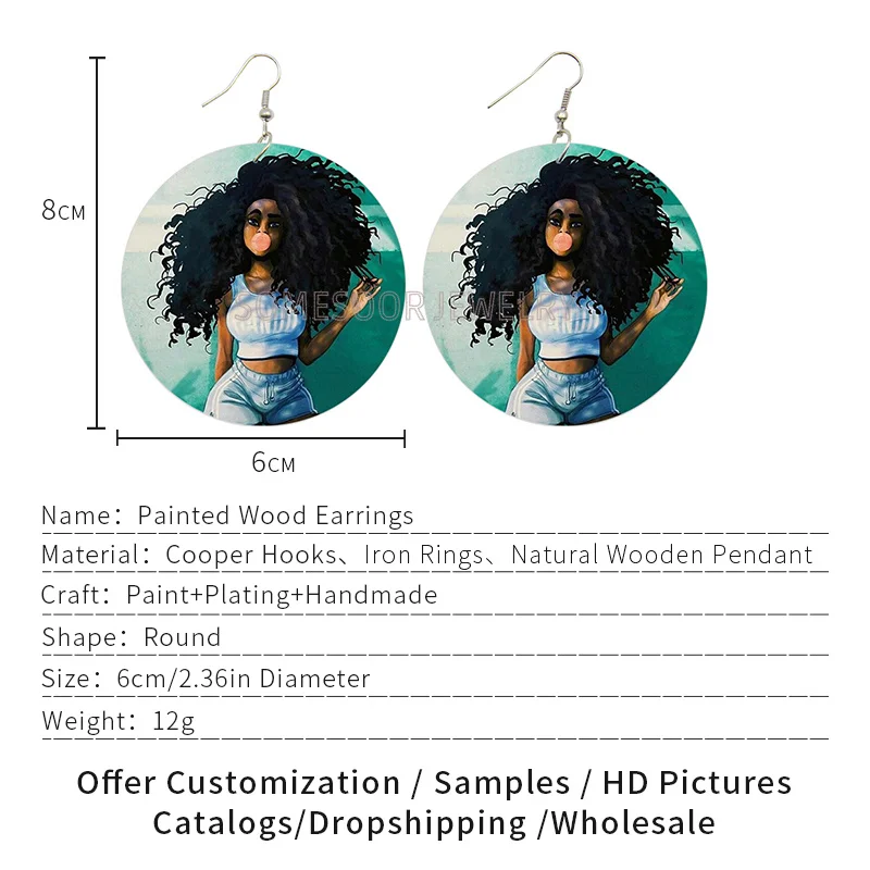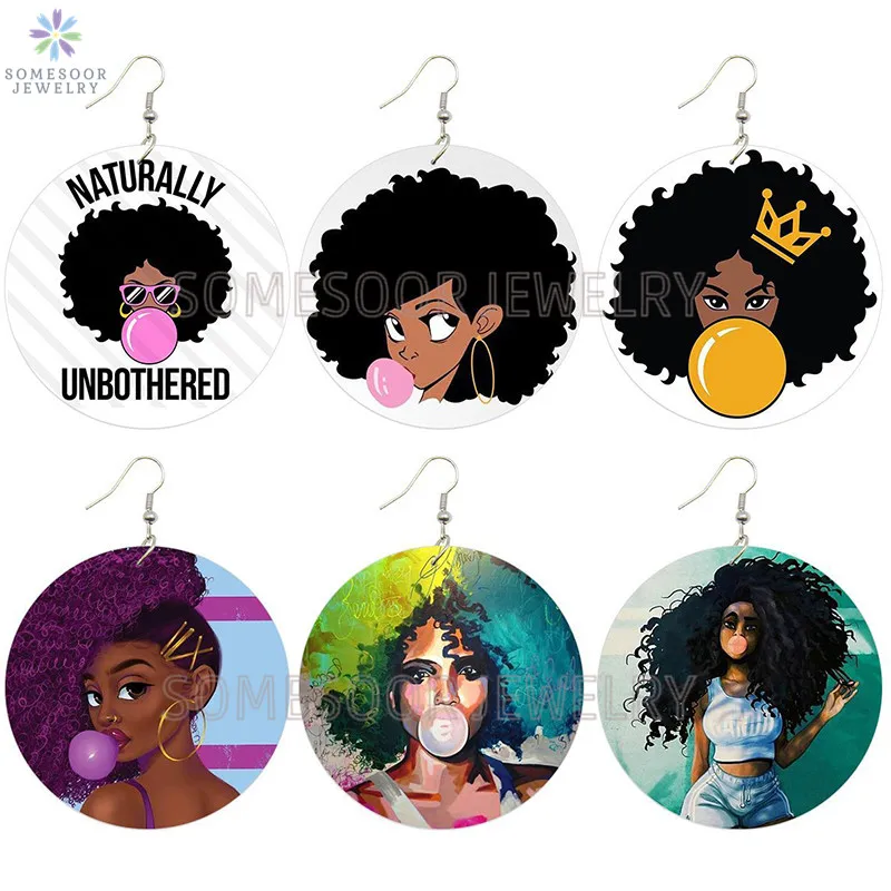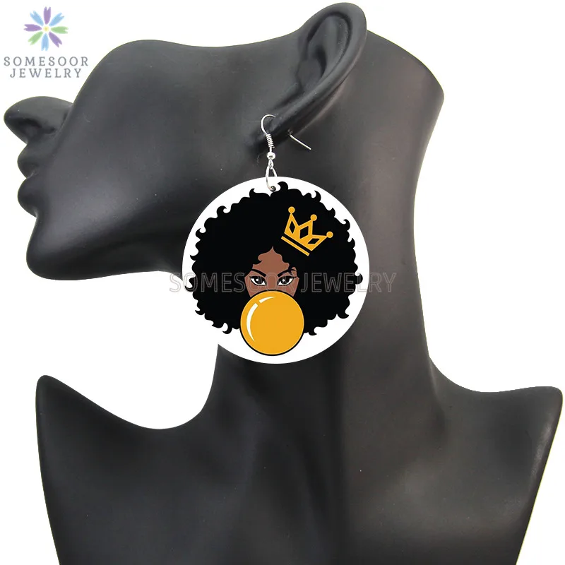 SOMESOOR меланин поппин королева вьющиеся деревянные висячие серьги...