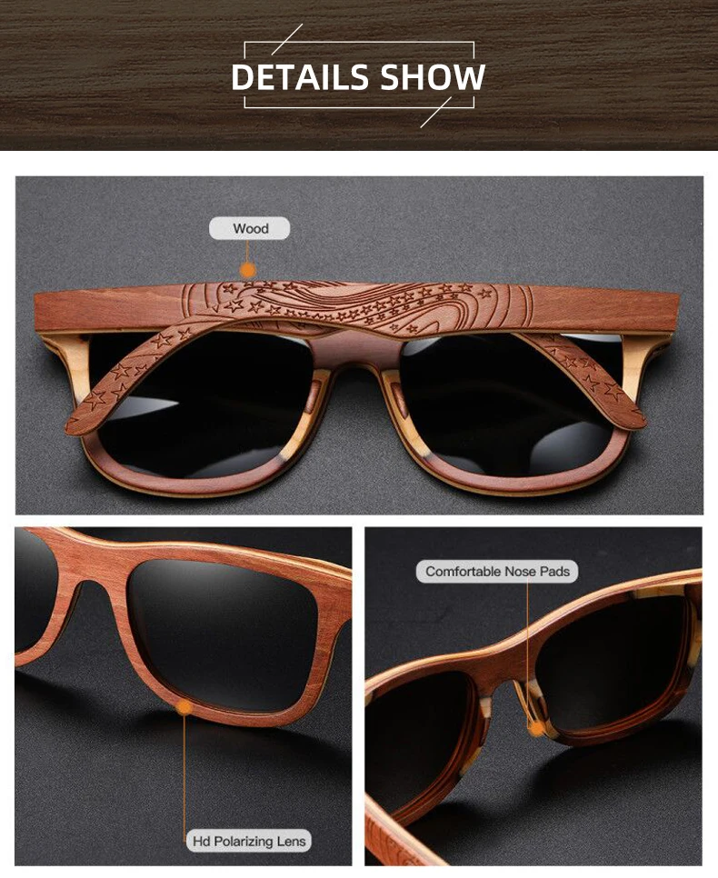 Брендовые поляризационные солнцезащитные очки с деревянной оправой ...