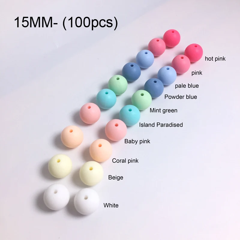Бесплатная доставка, 100 шт., 15 мм, свободные силиконовые бусины для прорезывания зубов, ожерелье, аксессуары для жевания, прорезыватель без бисфенола А, бусины для прорезывания зубов