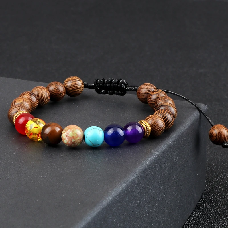 Мужской браслет с деревянными бусинами, крест, 7 чакр, исцеляющий баланс, браслеты из оникса и браслеты, Сова, молитва, рейки, Будда, женские Украшения