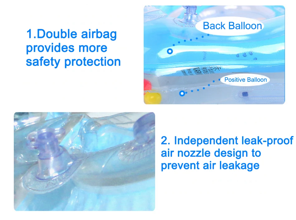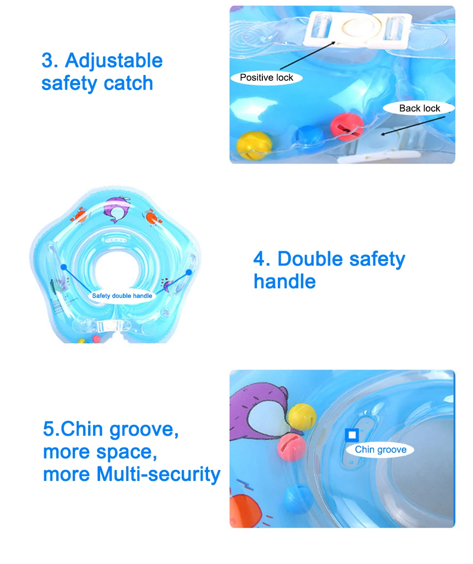 Безопасная Двойная подушка безопасности, износостойкая и практичная;Характеристики:Материал: ПВХРазмер:Внутренний диаметр кольца для шеи 9 см/3,5 дюйма, наружный диаметр 39 см/15,4 дюймаРекомендуемый Возраст: 0 - 18 месяцевПодходит для сцены: оборудование для отдыха, плавания и других видов спортаЦвет: розовый, красный, оранжевый, синий, зеленый