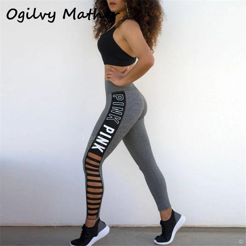 Женские леггинсы с вырезами Ogilvy, розовые леггинсы составного кроя с надписью, с высокой талией, спортивная одежда, 2020