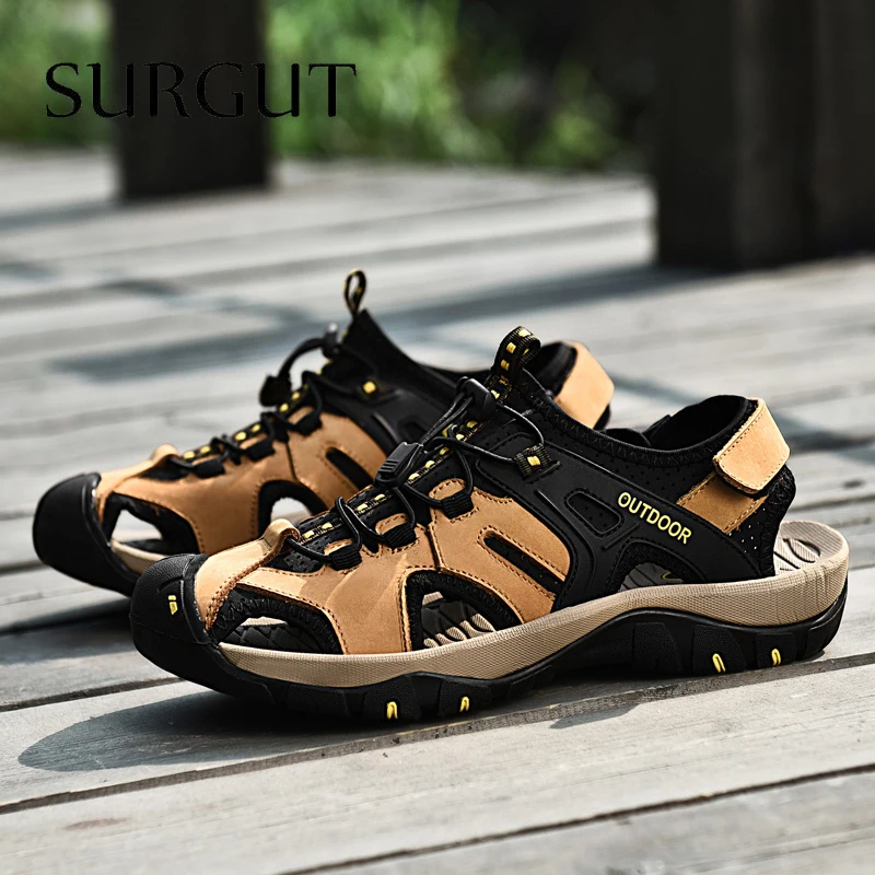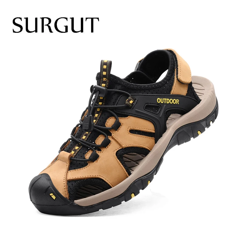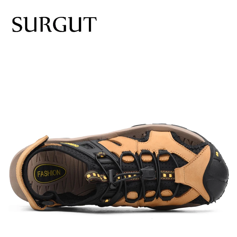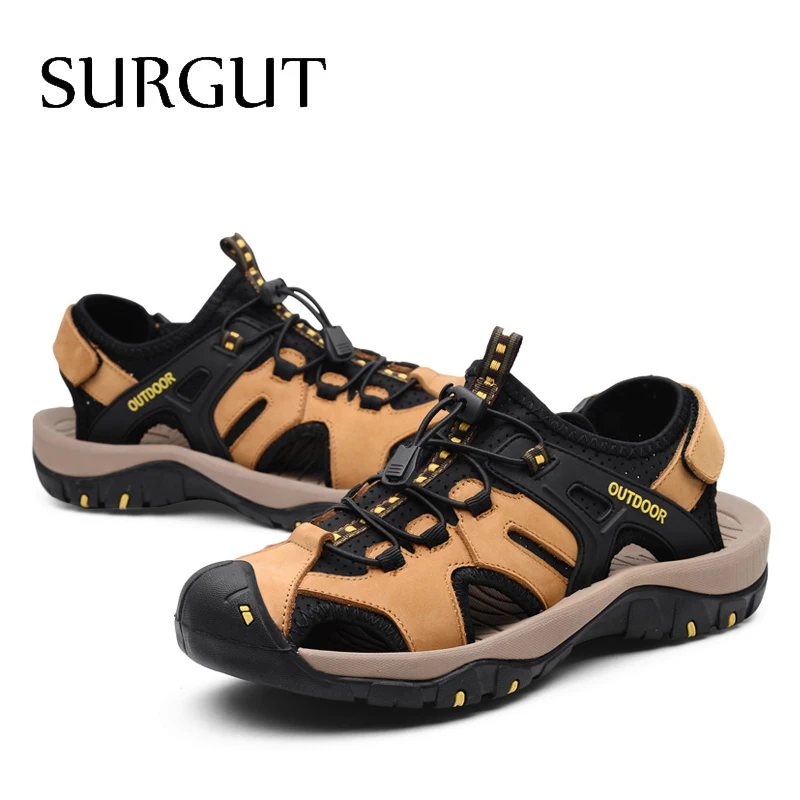 Мужские летние сандалии из натуральной кожи SURGUT, повседневная обувь в деловом стиле, дышащие пляжные сандалии в римском стиле