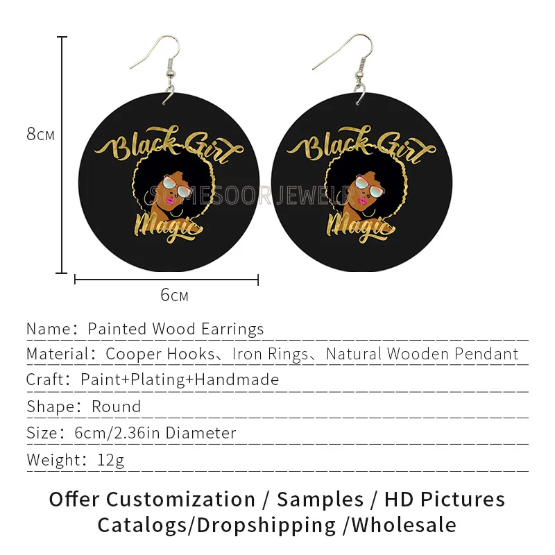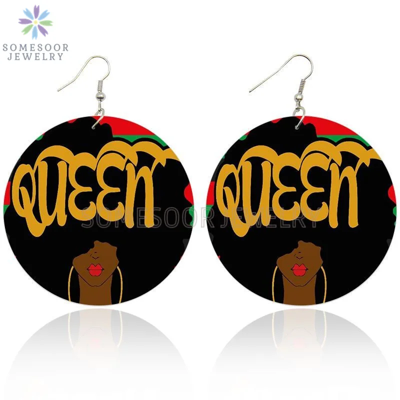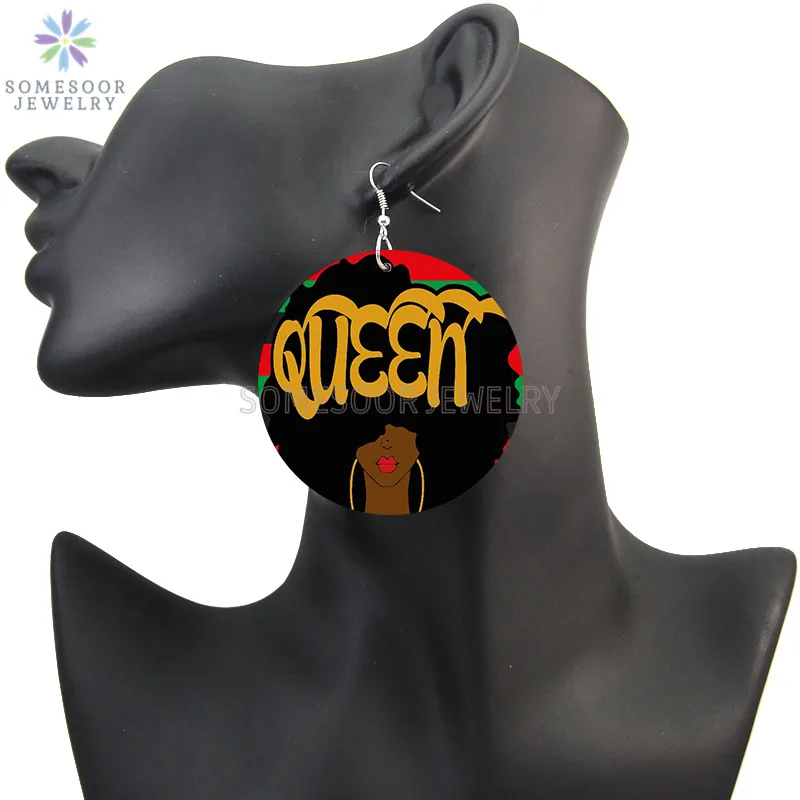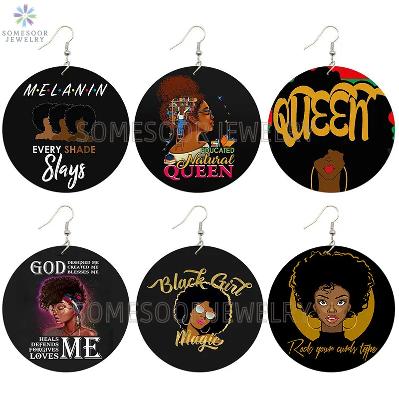 Образованные натуральные королевские афро деревянные серьги SOMESOOR, уважаемые меланиновые женские Деревянные ювелирные изделия с принтом, черные волшебные подарки для девочек