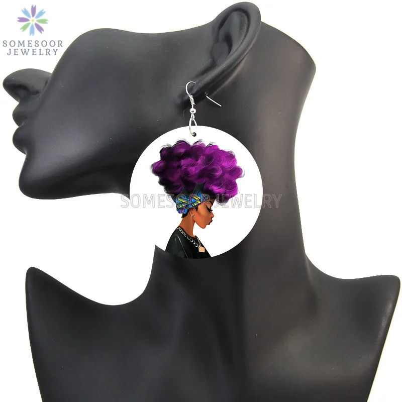 SOMESOOR меланин поппин королева вьющиеся деревянные висячие серьги...