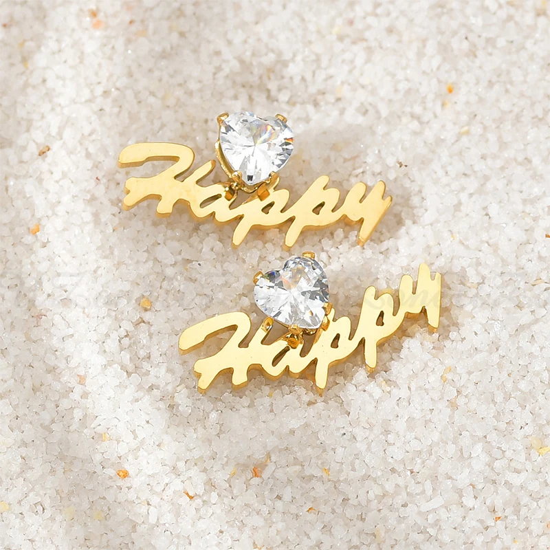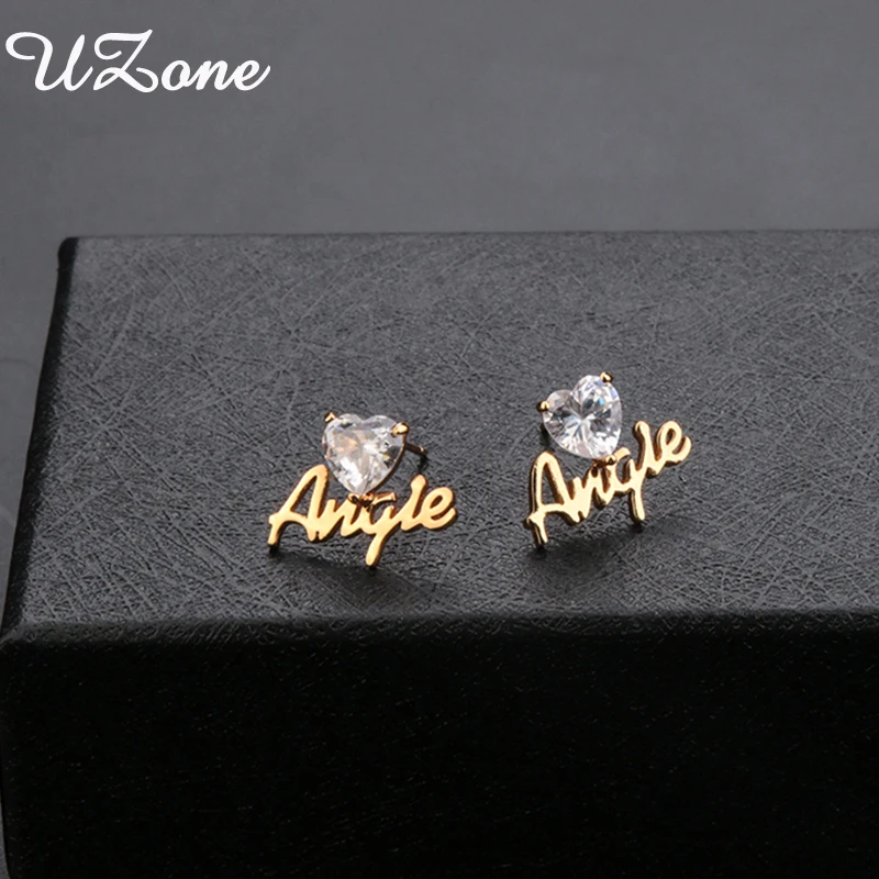 Женские серьги-гвоздики UZone, индивидуальные серьги-гвоздики из нержавеющей стали с кристаллами, индивидуальная именная табличка серьги в форме сердца, оптовая продажа