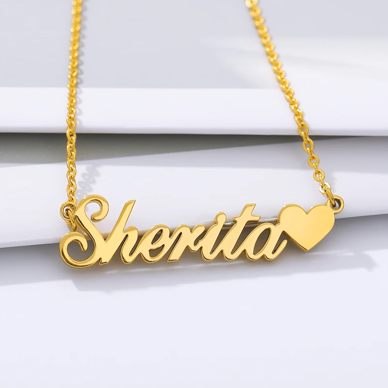 Женское Ожерелье из нержавеющей стали с персональным именем, золотое ожерелье с сердечком, подарок для девочек