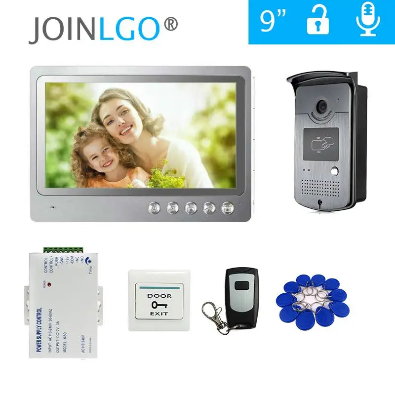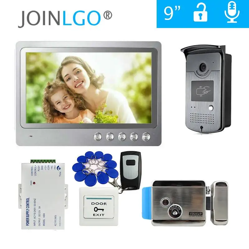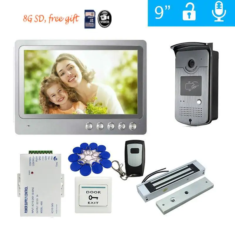 Видеодомофон с цветным экраном 9 дюймов, система домашней безопасности с функцией записи, дверной звонок с RFID-защитой и камерой, электрический замок
