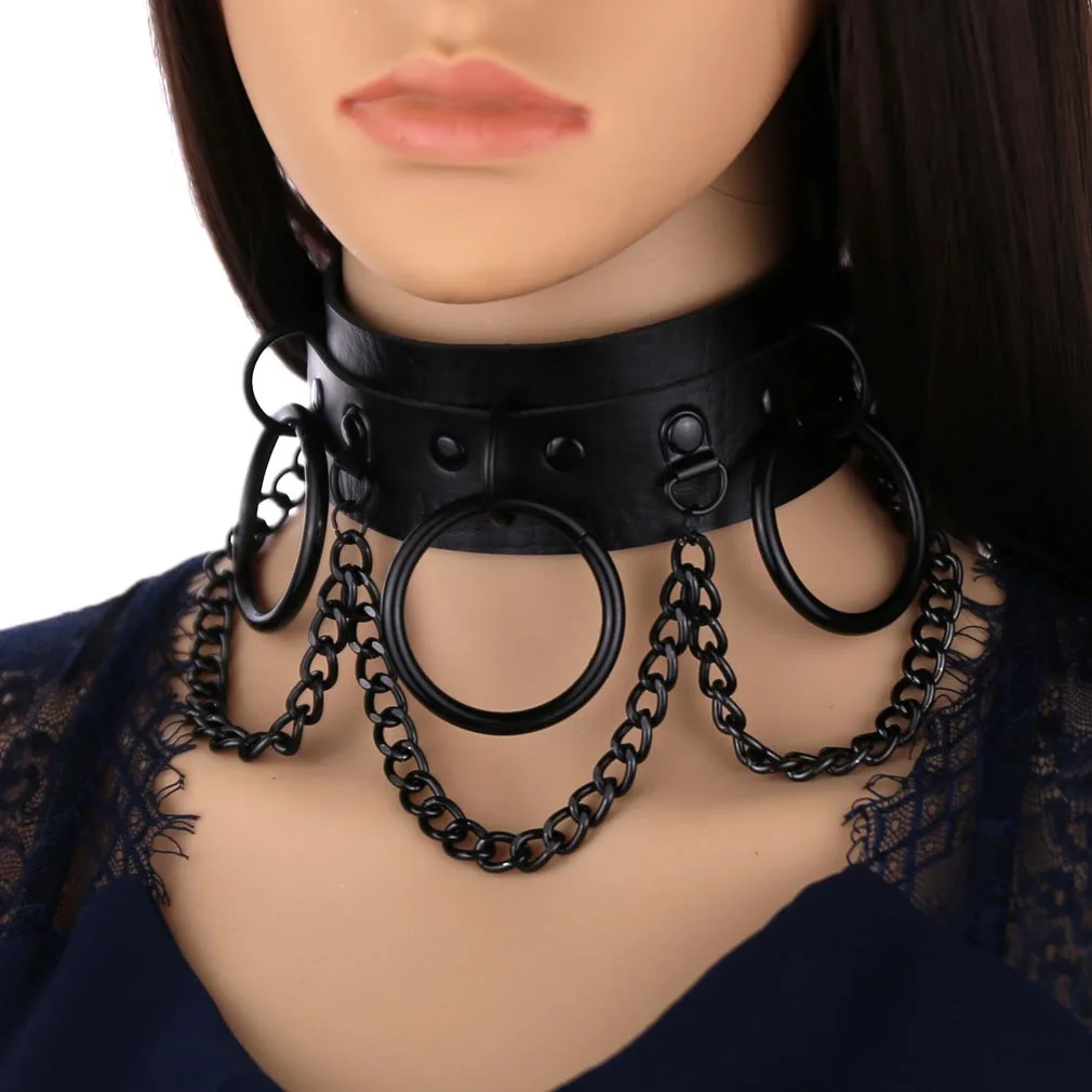 Кожаный чокер InsGoth с круглым цепочкой Женский, модный пикантный кожаный ошейник в стиле панк, металлическая уличная одежда