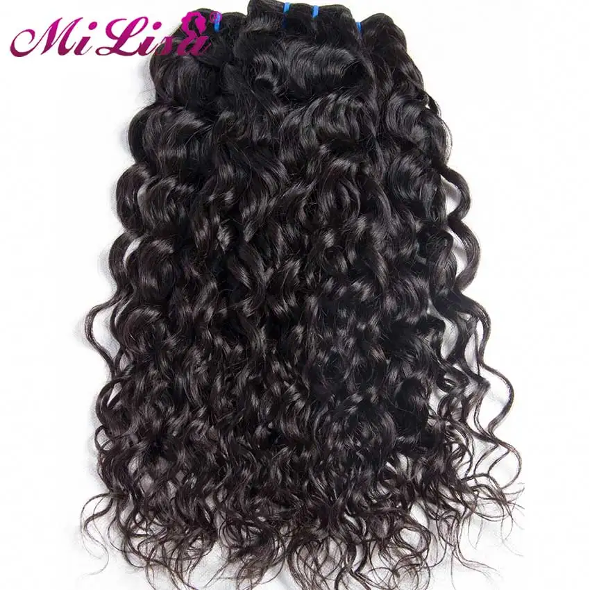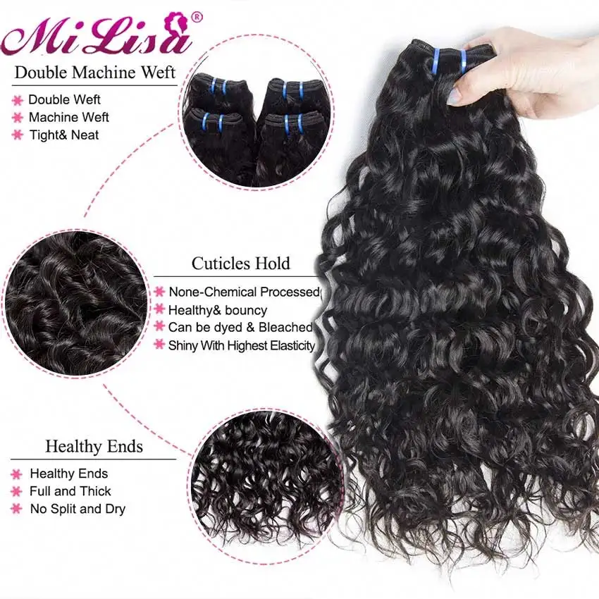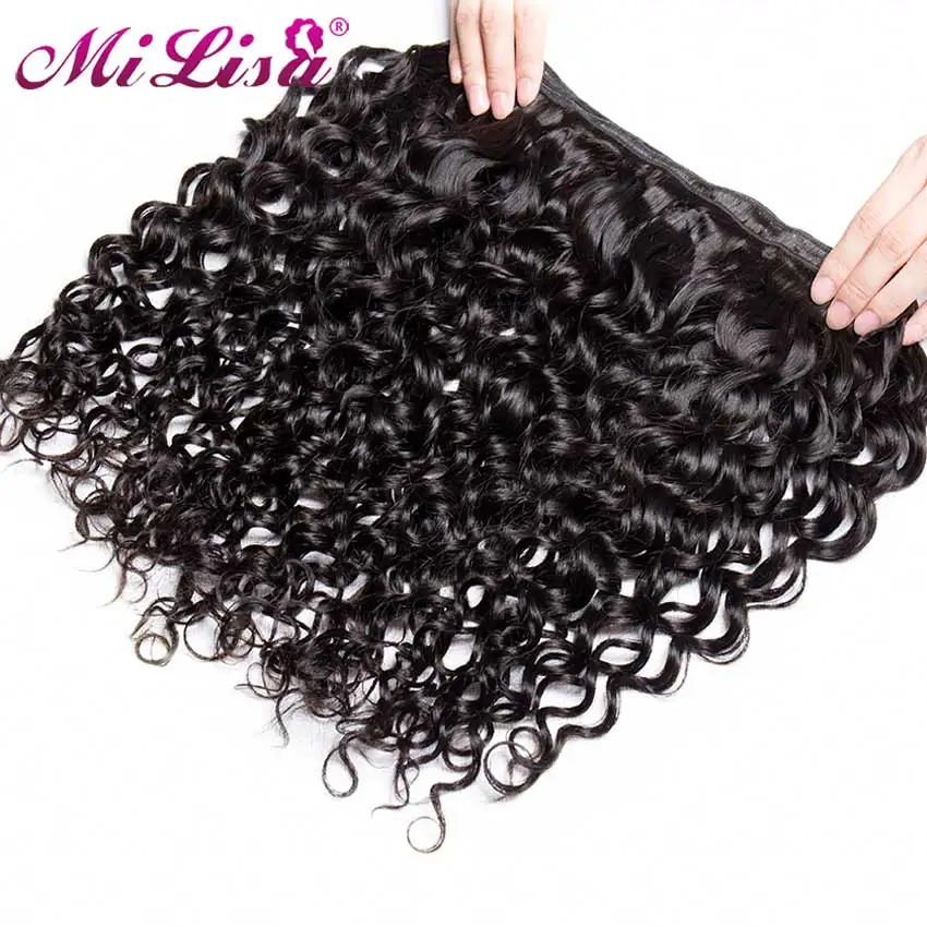 Бразильские волосы волна воды 3 пряди с закрытием кружева Mi Лиза м...