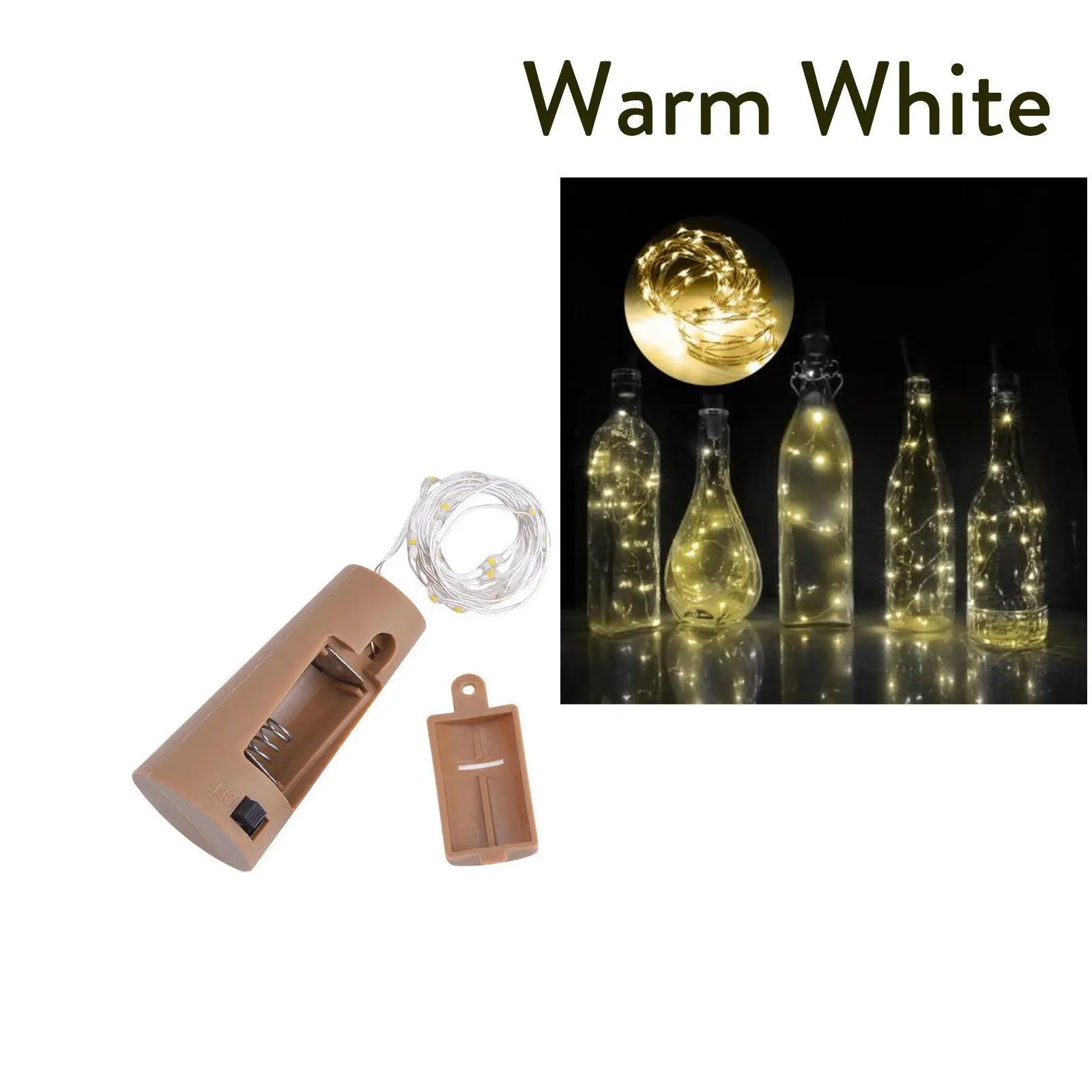 Название продукта: светодиодный провод из меди Материал: Серебристая медь + пластик Количество СВЕТОДИОДНЫЙ: 10 светодиодный s Угол луча: 360 градусов Режим: устойчивый Водонепроницаемость: IP65 (провод водонепроницаемый, батарейный блок не водонепроницаемый) Длина: 1 м 10 светодиодов Размер пробки боттел: 15,5*47,5*22,5 мм Батарея: 3 * LR44 батареи (батареи входят в комплект) Цвет: теплый белый/прозрачный белый/многоцветный/синий/розовый/зеленый/желтый/фиолетовый/красный