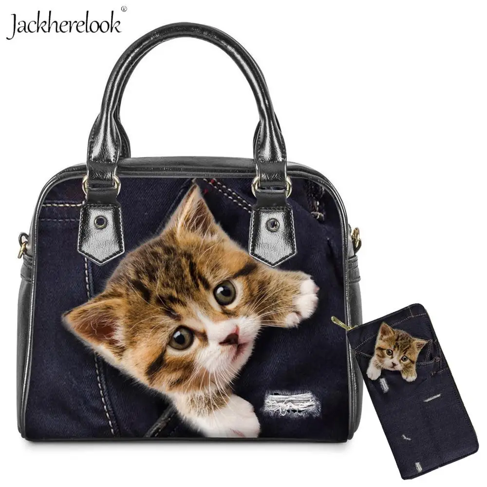 Jackherelook, милая Женская Повседневная Сумка-тоут с принтом кошки...