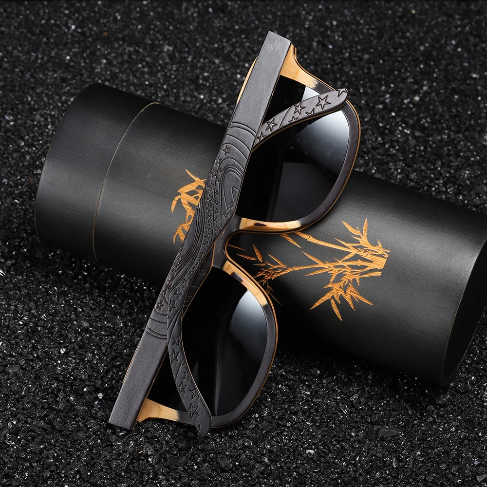 Мужские солнцезащитные очки с бамбуковой оправой, с поляризацией