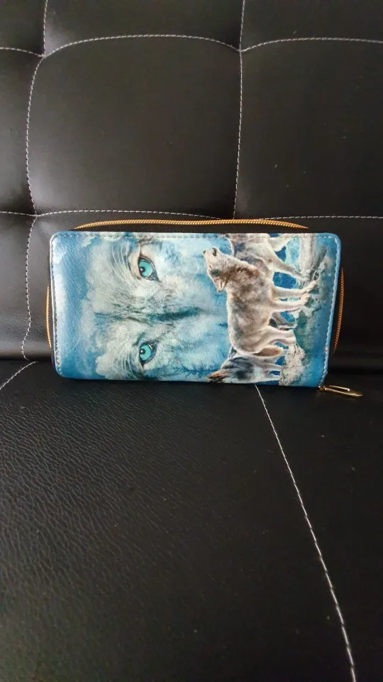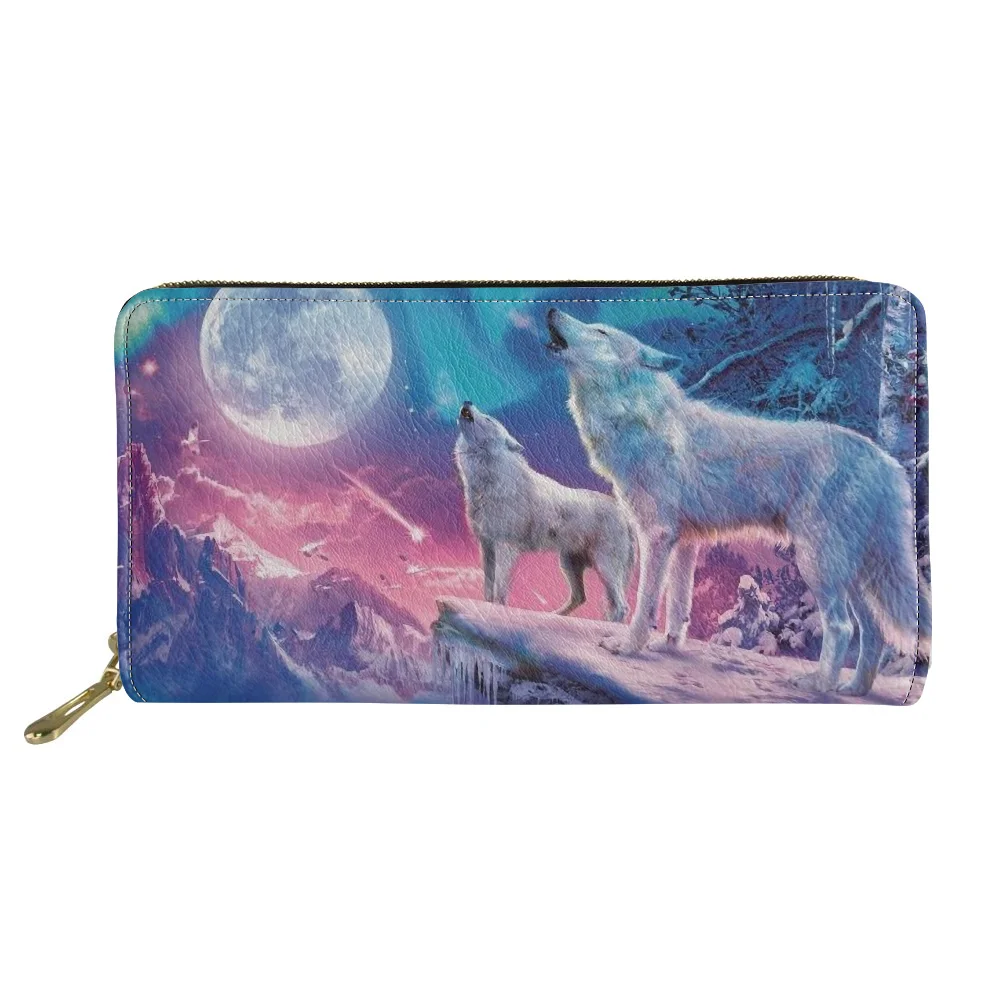 FORUDESIGNS, кожаные кошельки с принтом волка для женщин, длинный ж...