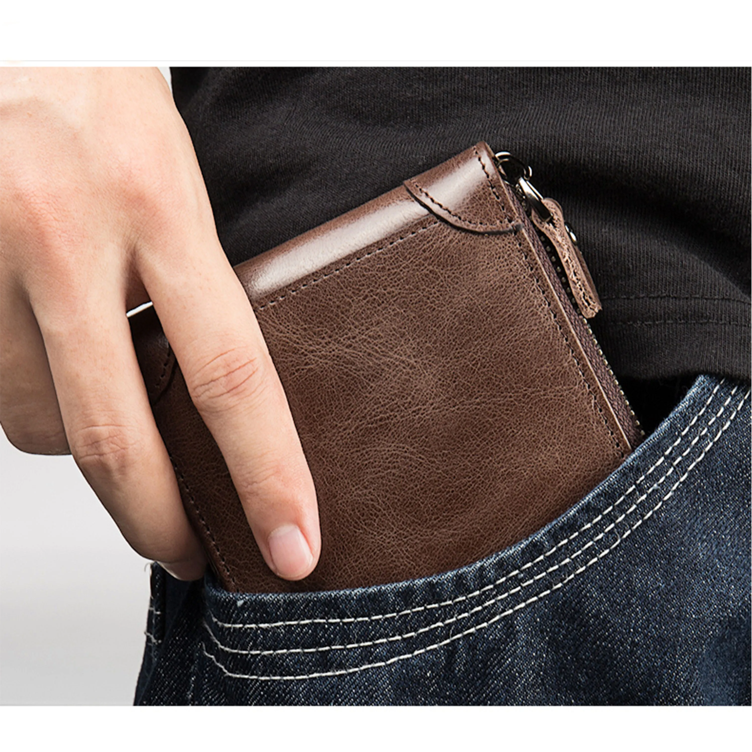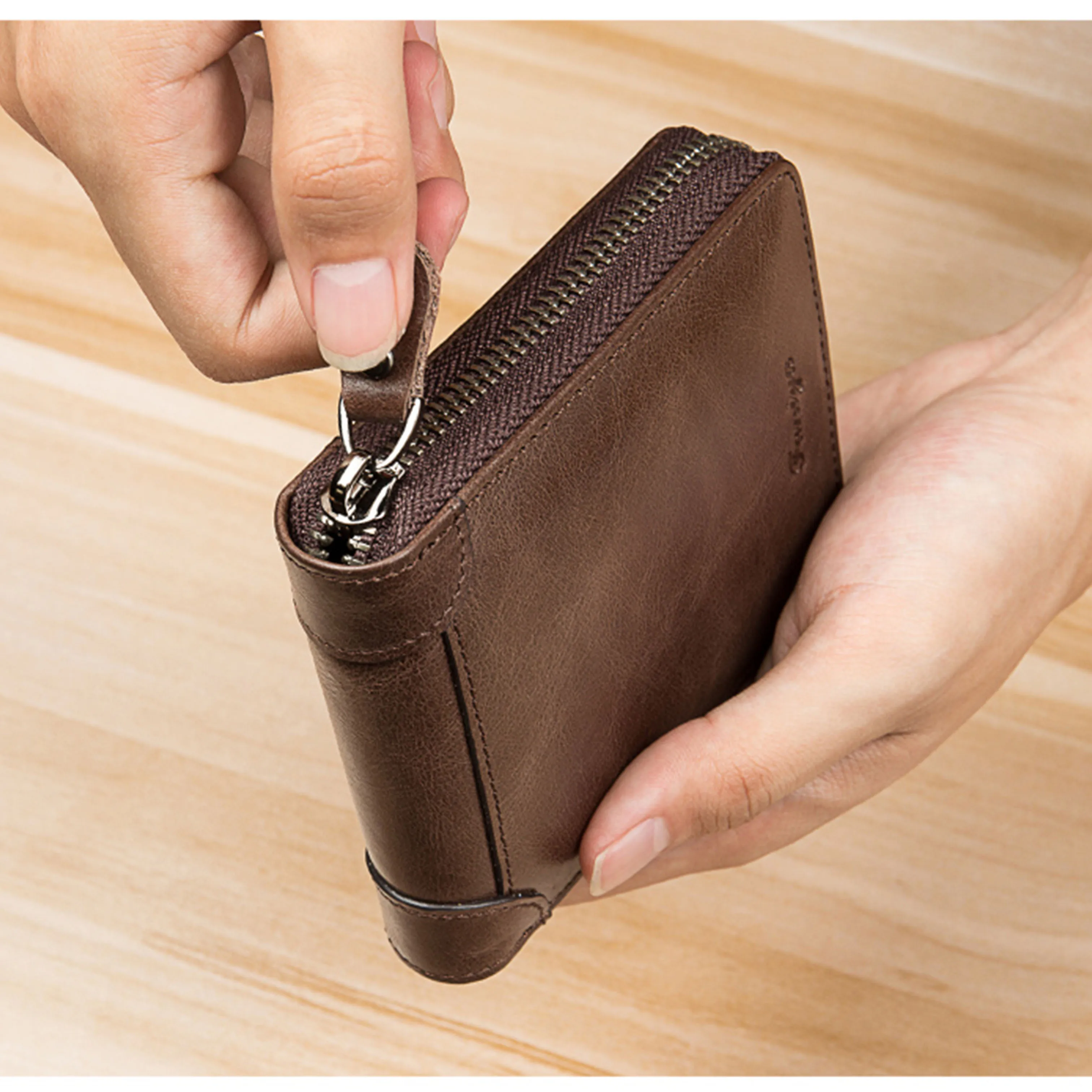 Японский кожаный бумажник со стальным лезвием, двойной кошелек с ко...