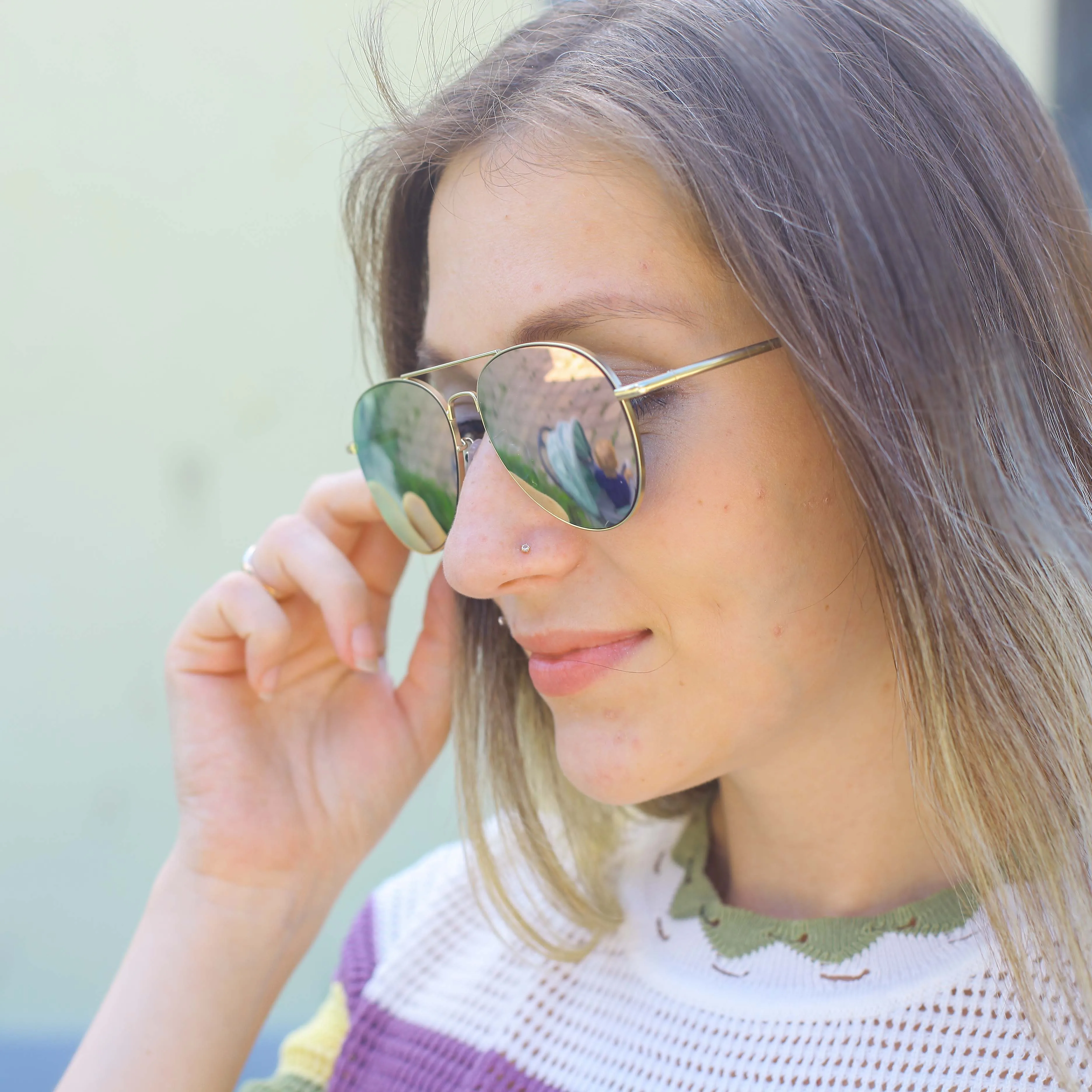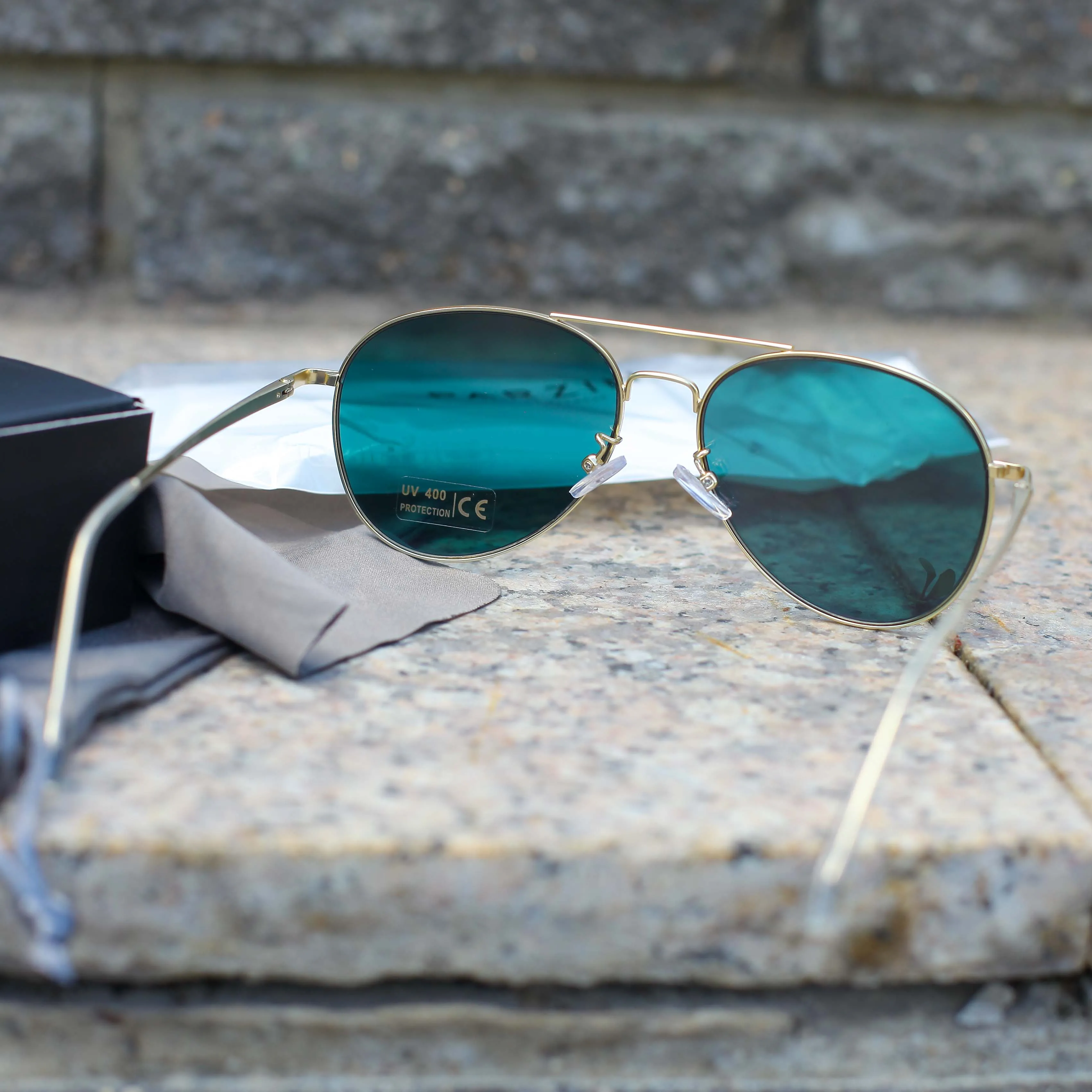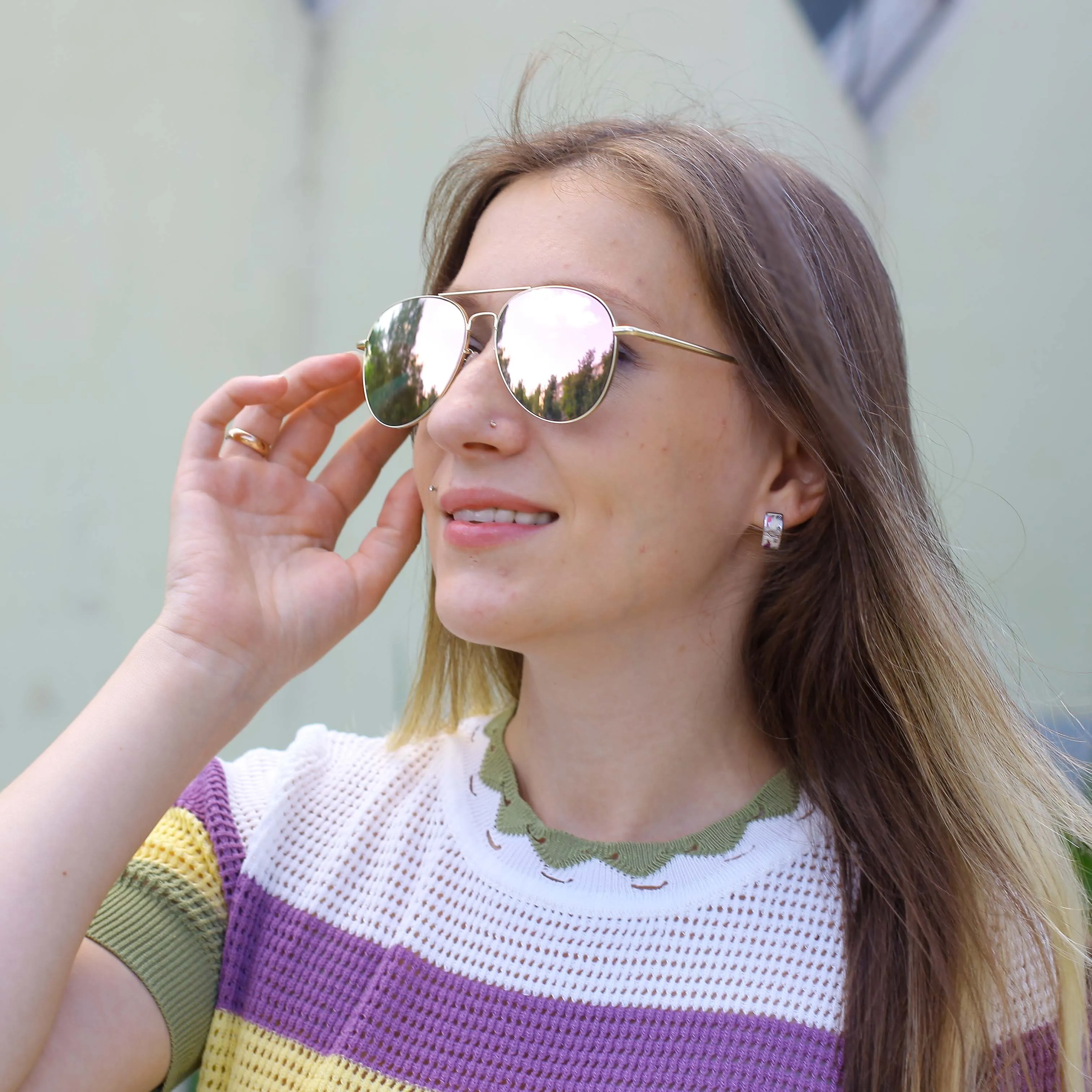 Крутые очки! Качество отличное! Выполнены аккуратно, без дефектов. Материал линз: поликарбонат. На линзах был приклеен стикер с указанием уровня солнцезащиты - UV400. Линзы имеют антибликовое покрытие. Оправа серебристого цвета. Носоупоры и наконечники на дужках силиконовые. Смотрятся очки классно! Я вообще очень люблю такую форму - авиаторы. В нОске комфортные. Довольна приобретением!