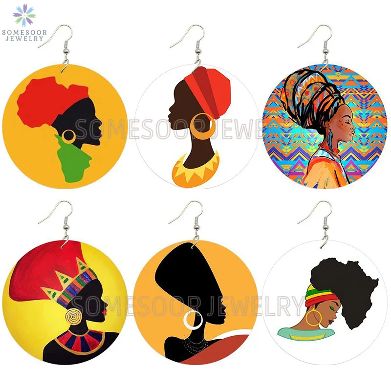 SOMESOOR лазерная гравировка афро деревянные висячие серьги Африкан...