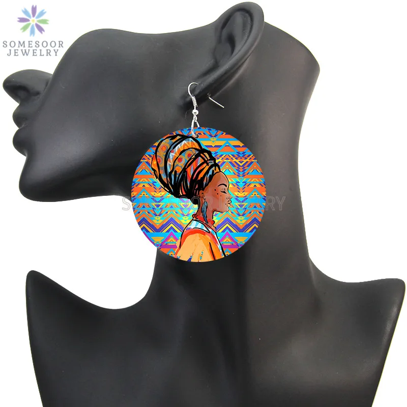 SOMESOOR меланин поппин королева вьющиеся деревянные висячие серьги...