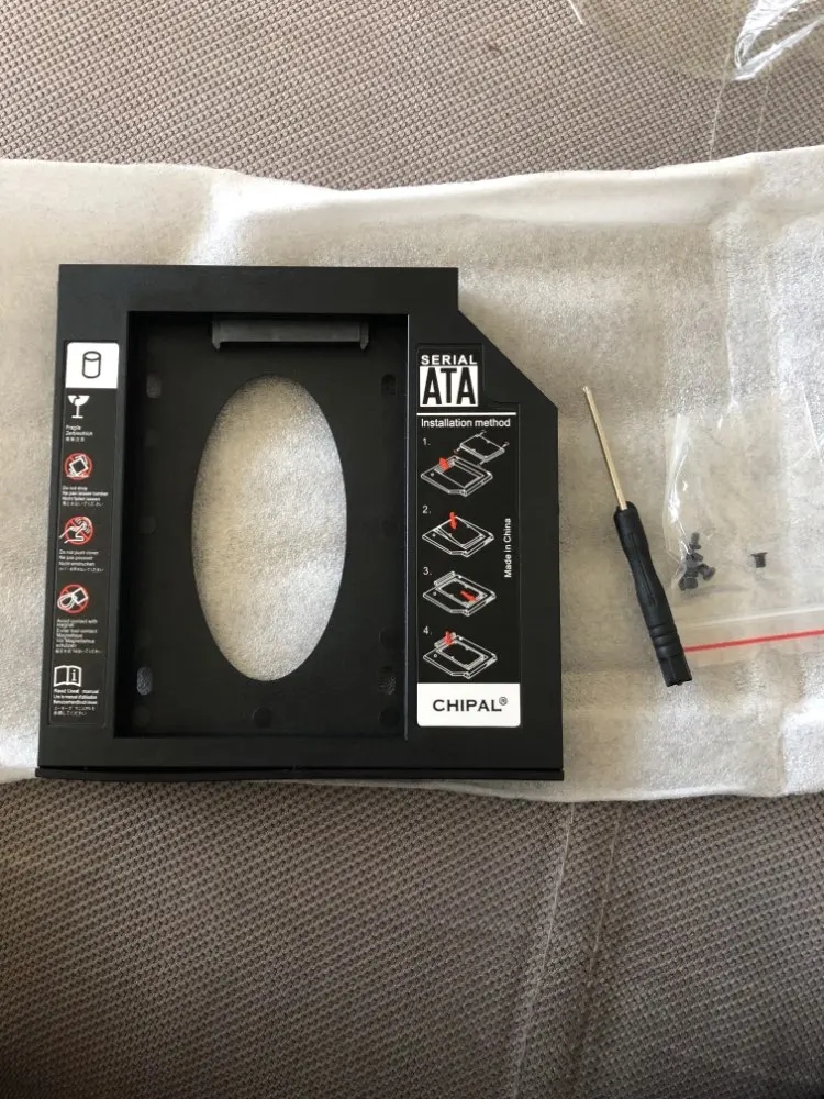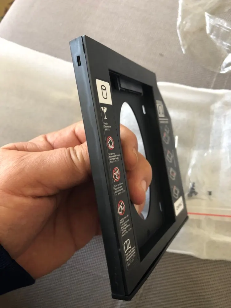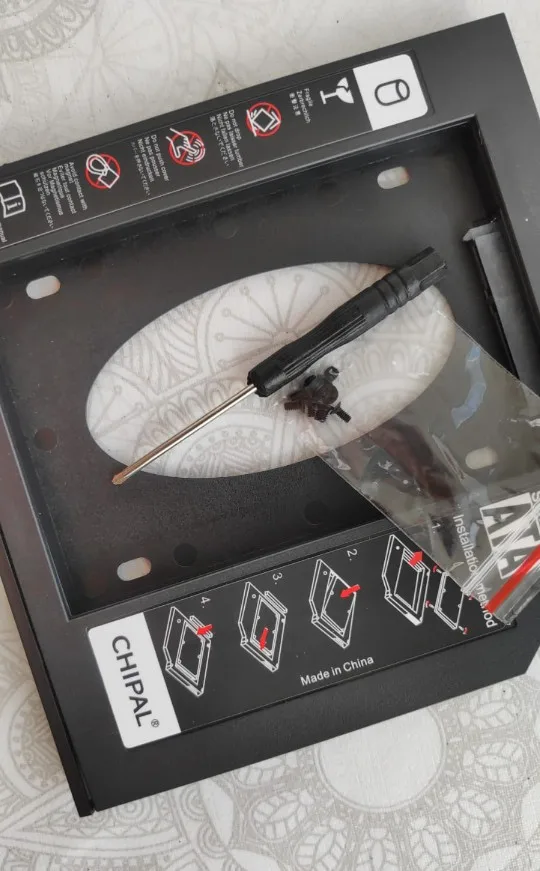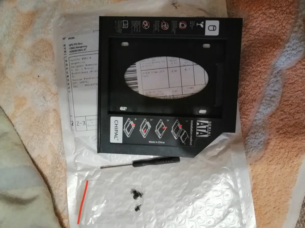 Пришло за 3 недели, хороший оптибей, использовала пол ссд, очень туго вставляется (а мб я не правильно это делала изначально), у болтиков в комплекте маленькая шляпка, из-за чего при криплении диска к корпусу оптибея, оги проваливаются если сильно затянуть, внешнюю панельку использовала родную от ноута