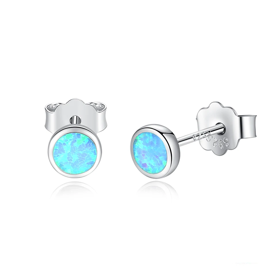 Женские серьги-гвоздики из серебра 925 пробы с голубым опалом