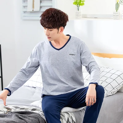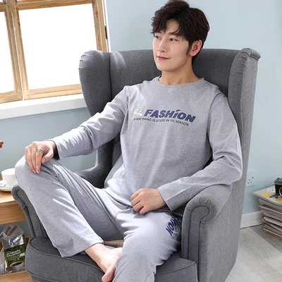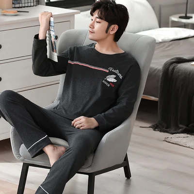 Для отдыха 2021 осенние мужские хлопковые пижамы с длинным рукавом мужской пижамный комплект для мужчин, для детей, одежда для сна, костюм повседневные штаны с узором Домашняя одежда для сна