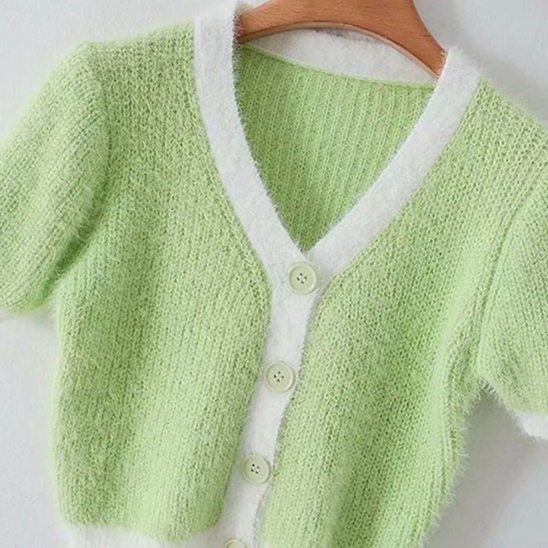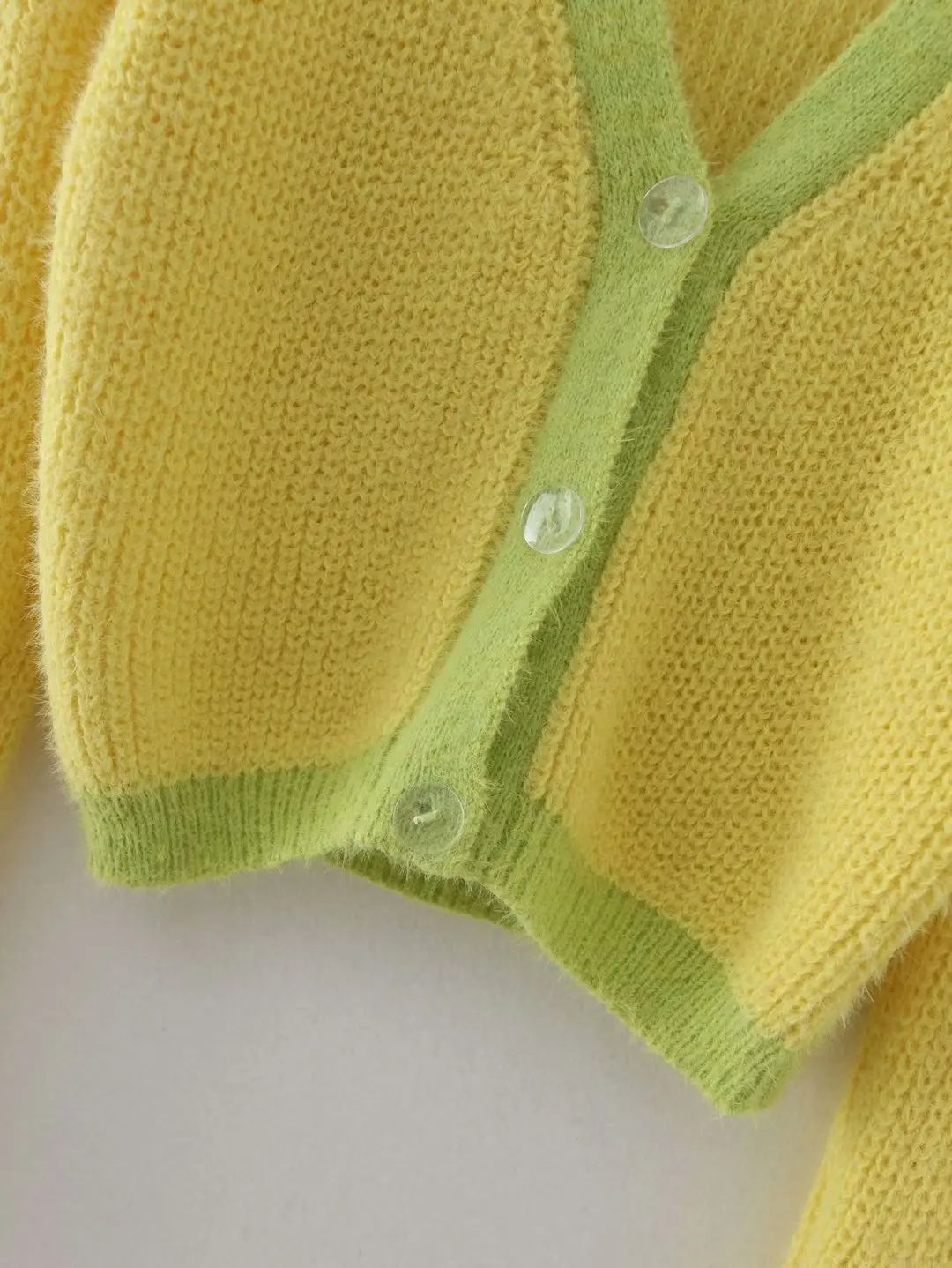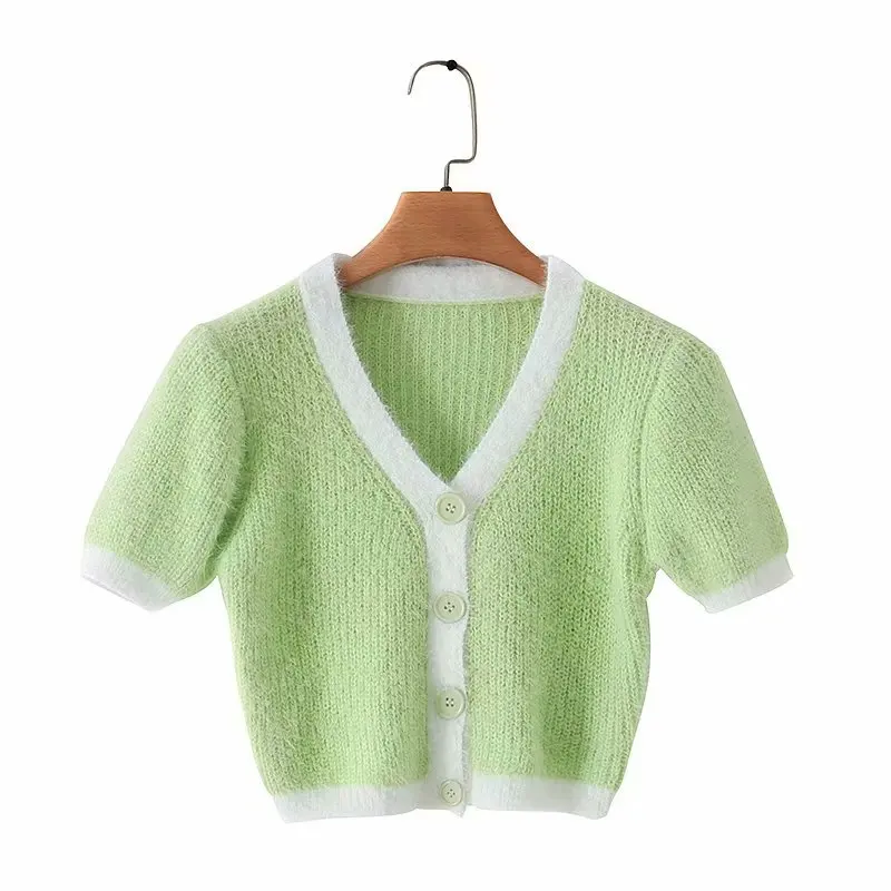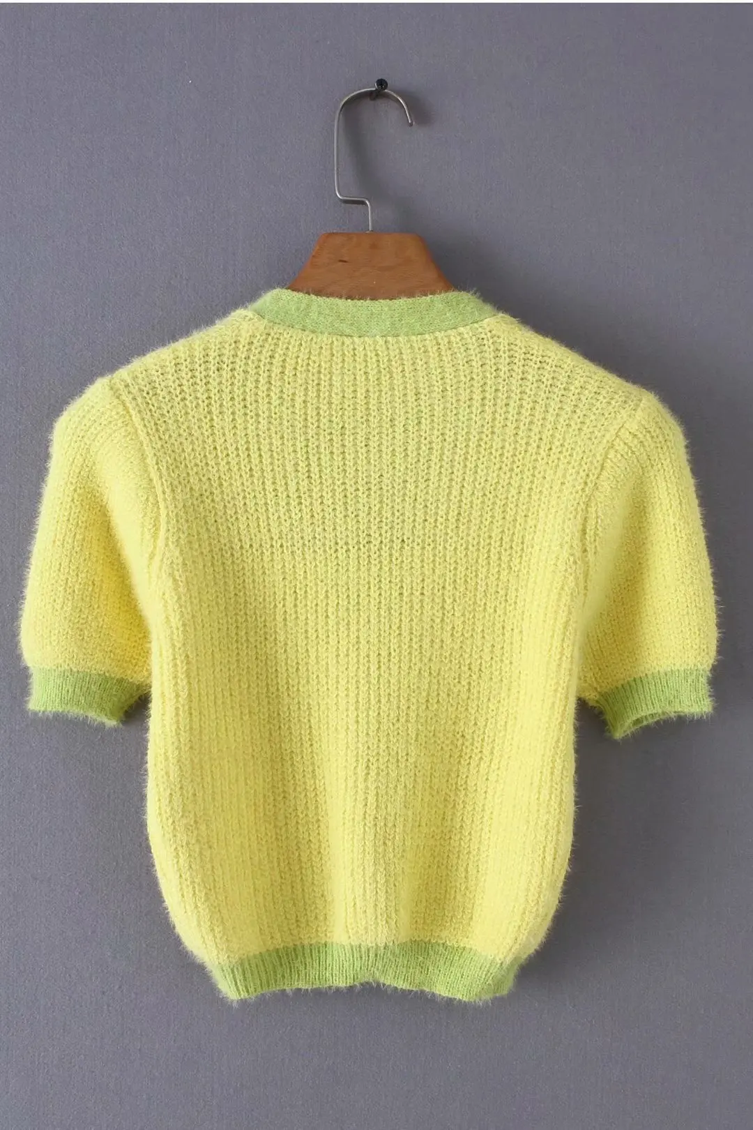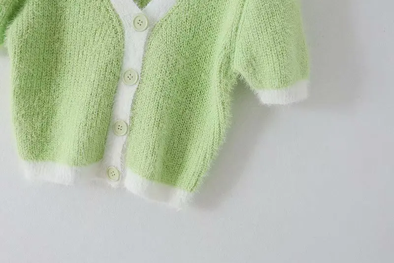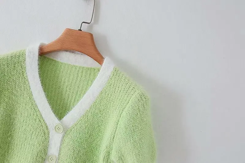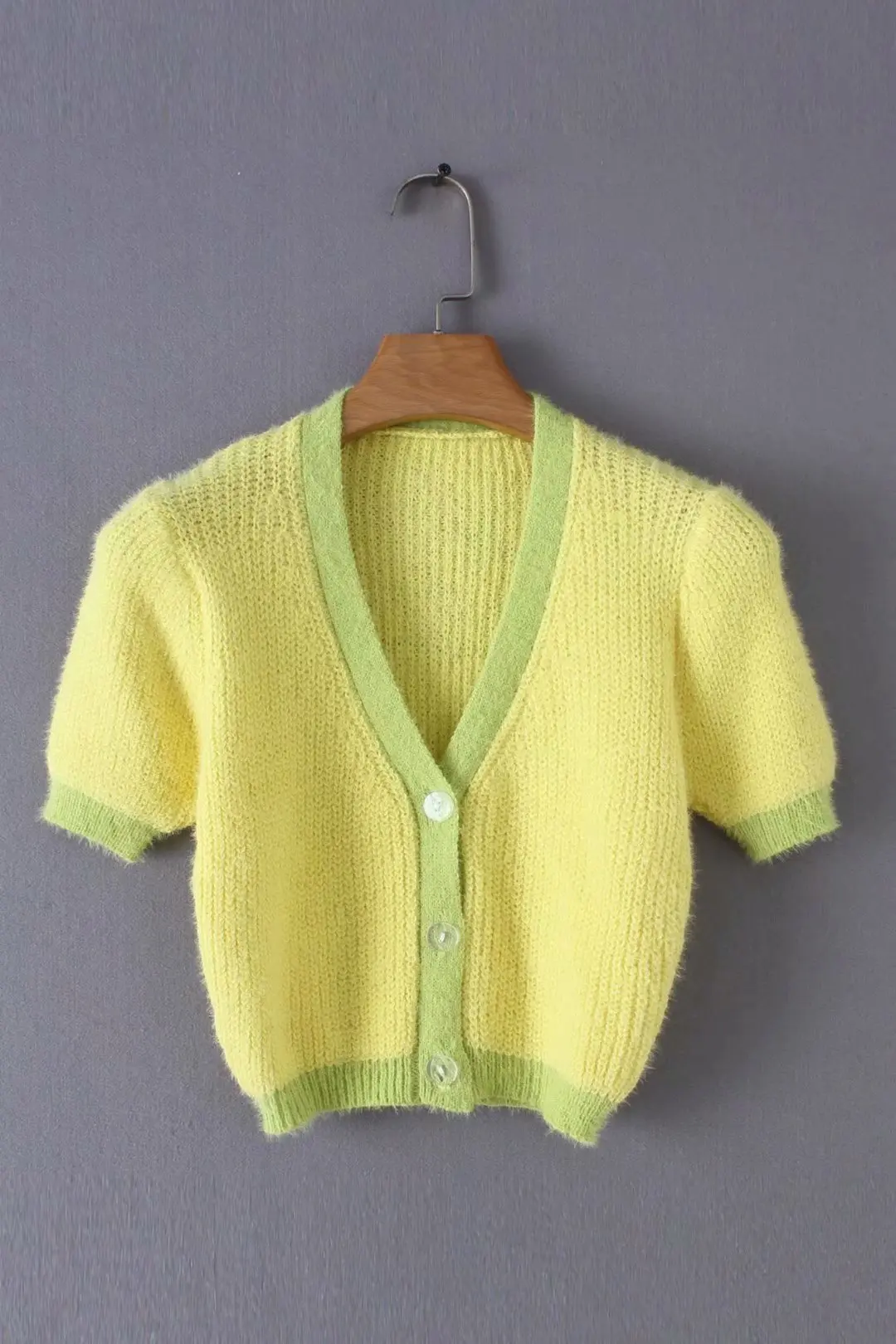 Розовый кардиган, женские свитера, корейский укороченный свитер, желтый осенний топ с коротким рукавом и v-образным вырезом, короткий кардиган из мохера, свитер на осень 2019