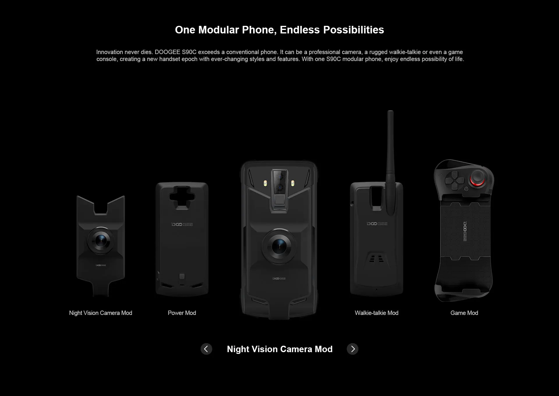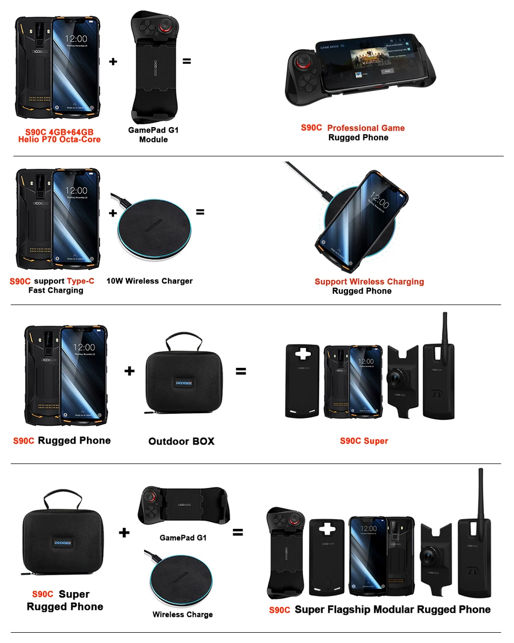 DOOGEE S90C IP68 модульный прочный мобильный телефон 6,18 "4 Гб 64 Гб Восьмиядерный Android 9,0 сканер отпечатка пальца Face ID Беспроводная зарядка 12V2A