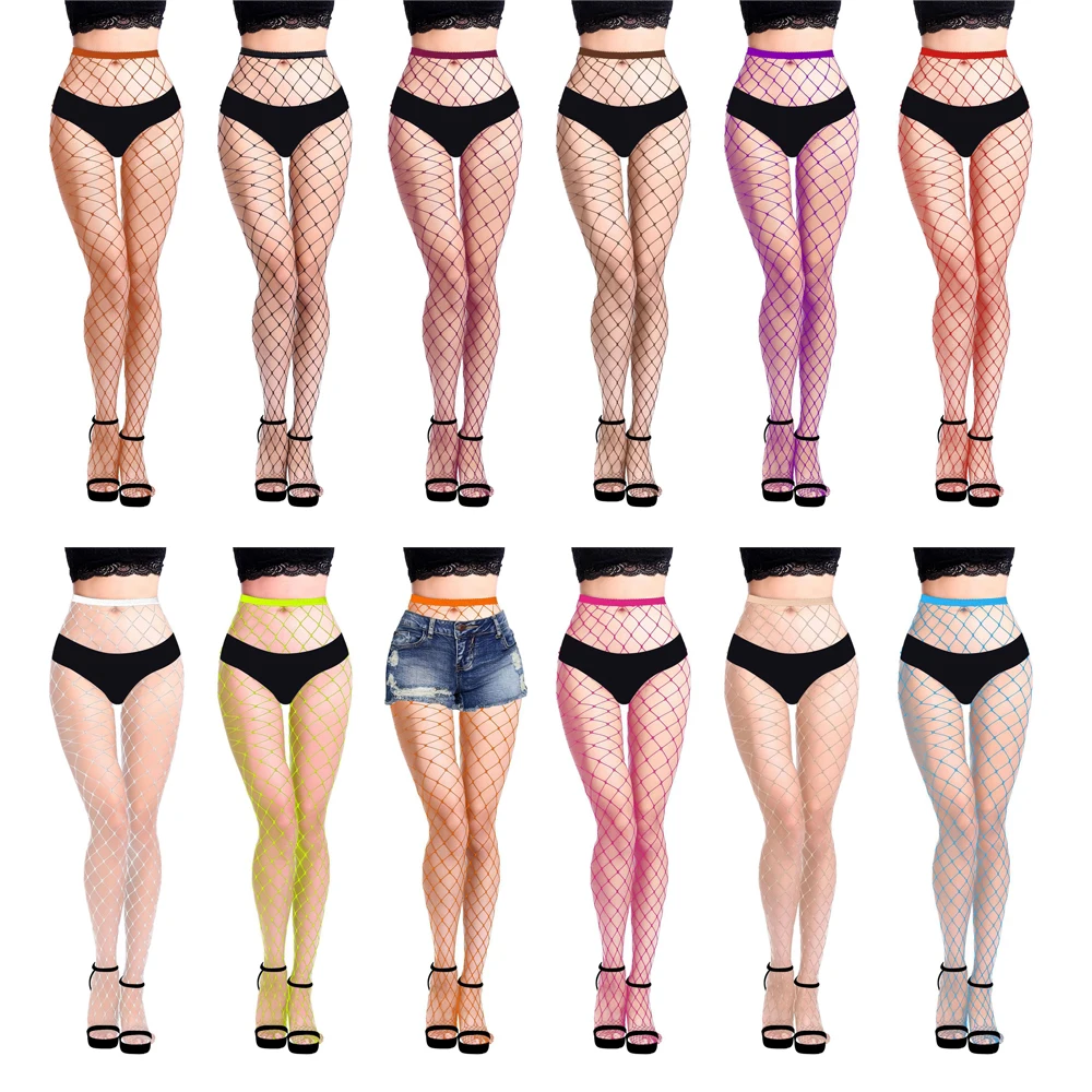 Новинка 2022, модные флуоресцентные сетчатые чулки, прозрачные ажурные колготки 15 цветов для клувечерние