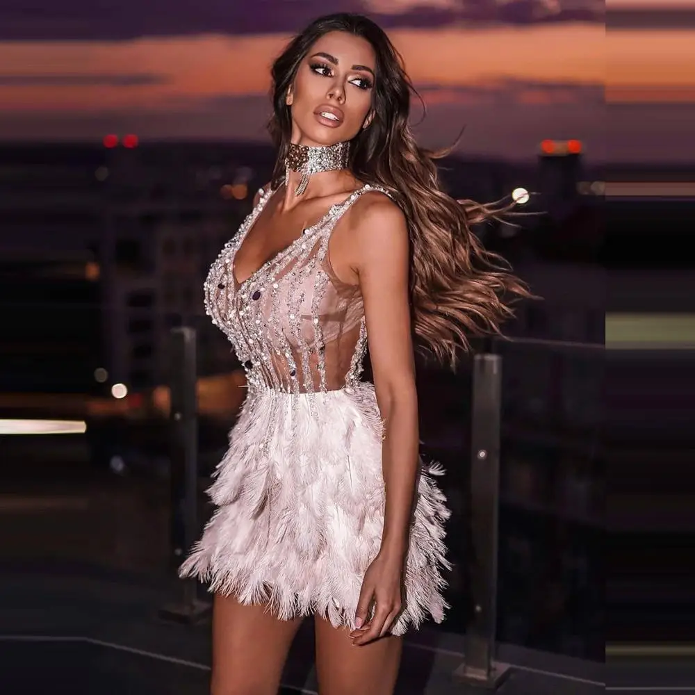 Современные Сексуальные Короткие коктейльные платья с бисером и пер...