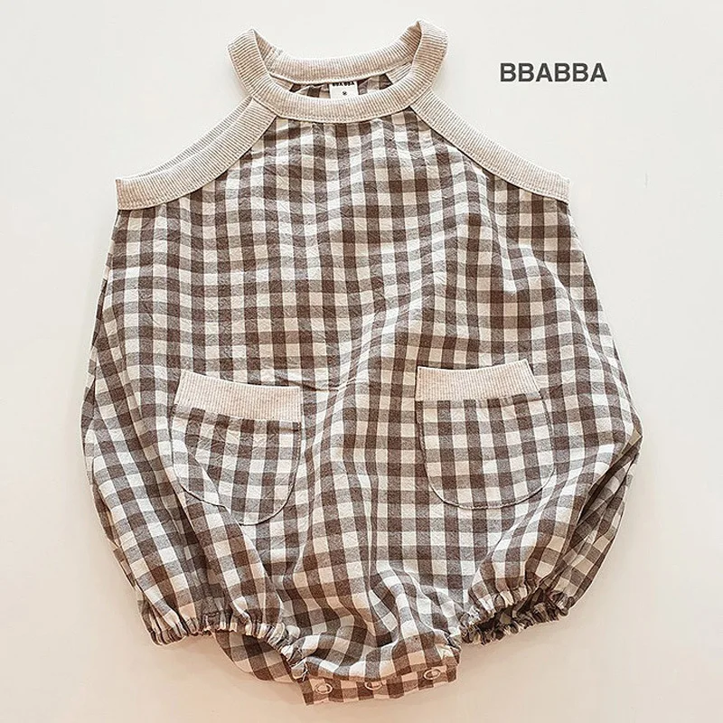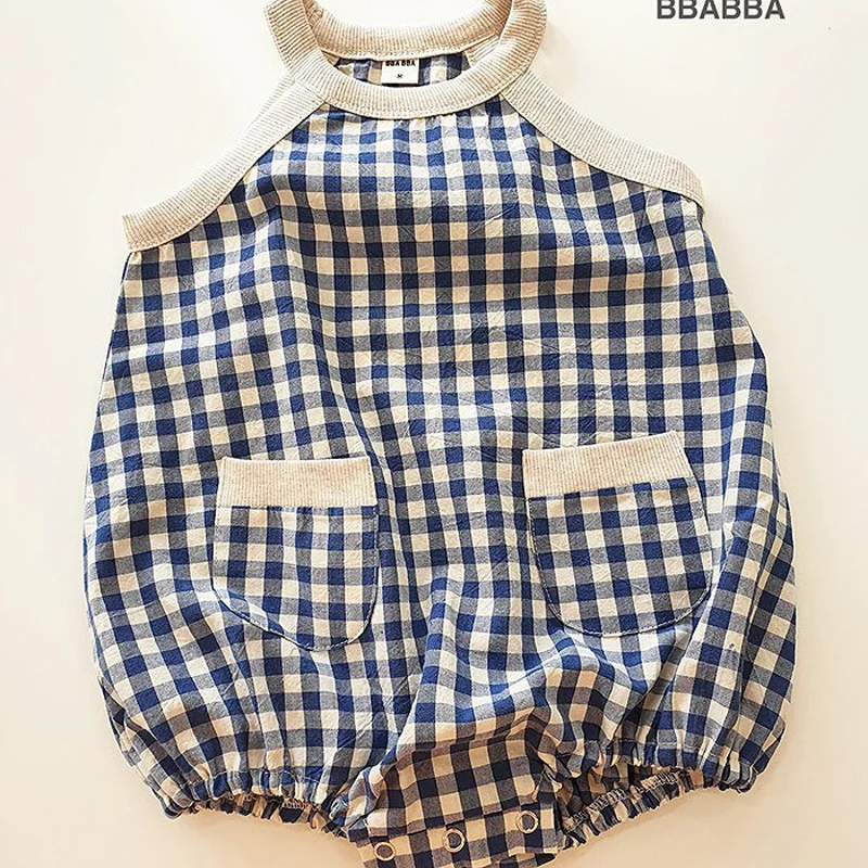 Лето 2021, новый стиль, клетчатый комбинезон, корейский Детский комбинезон для маленьких девочек