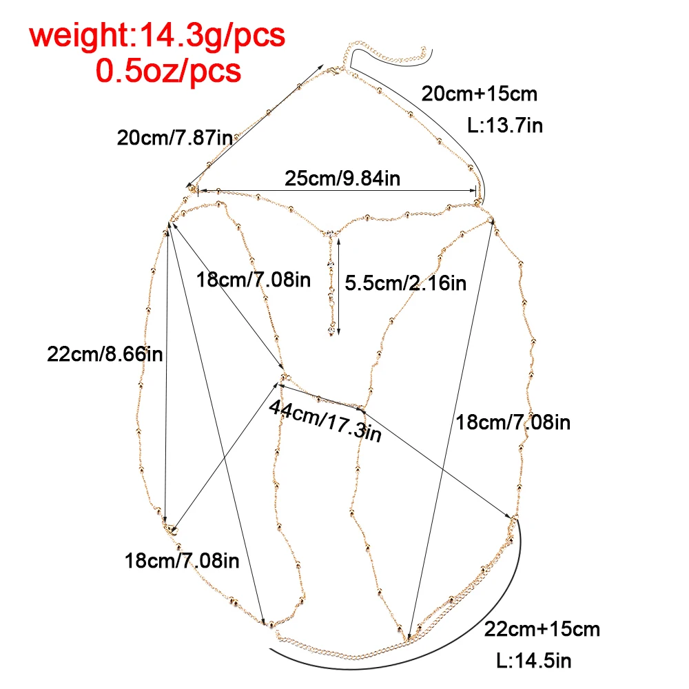 Это стильное, популярное и красивое ожерелье-кроссовера бикини.Одежда делает вас очень личными и уникальными.Уникальный и модный, обеспечит вам самый очаровательный вид.Идеально подходит для подарка.Покажите свое тело этим летом с этими красивыми цепями тела.Описание:100% новый и высокое качествоЦвет: золотой, серебряныйМатериал: сплавДлина: около 62 см + 7 см/24,4 + 2,76''Обхват талии длина цепи: около 40 см + 5 см/15,7 + 1,97''Длина между колье на цепочке и обхват талии длина цепочки: 15 см/5,91''Посылка включает в себя: 1 пикантная цепочка для телаПримечание: возможны отклонения на 1-2 см вследствие измерений вручную, спасибо!