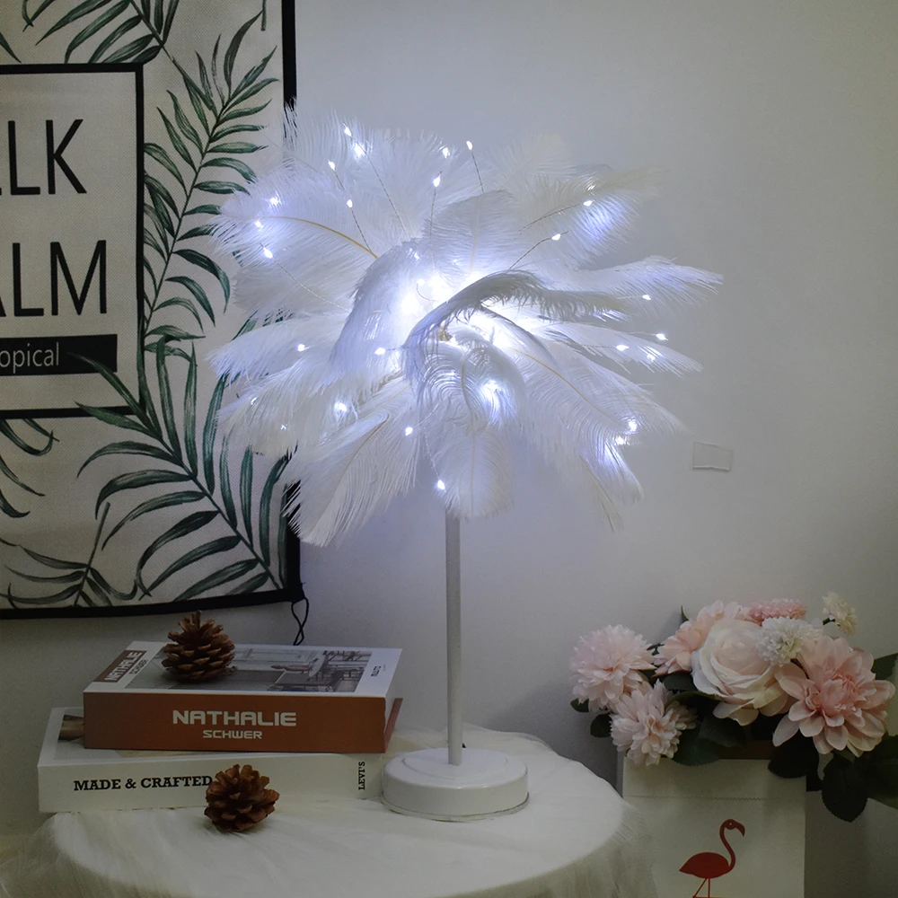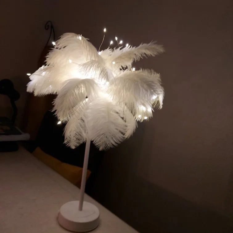 Ночник со страусиными перьями и пультом дистанционного управления, декоративный светсветильник льник с пером для дома, гостиной, спальни, вечеринки, свадьбы
