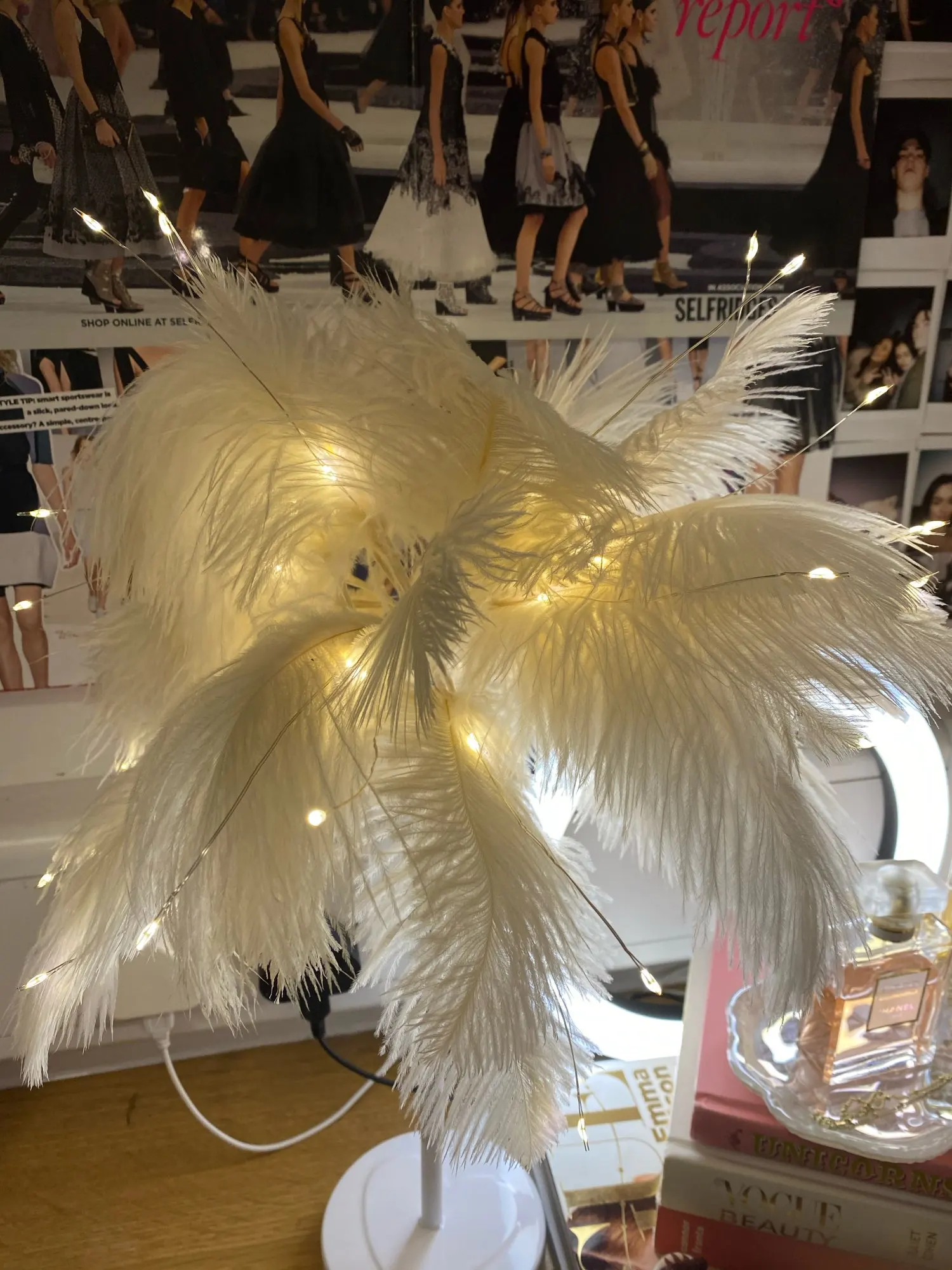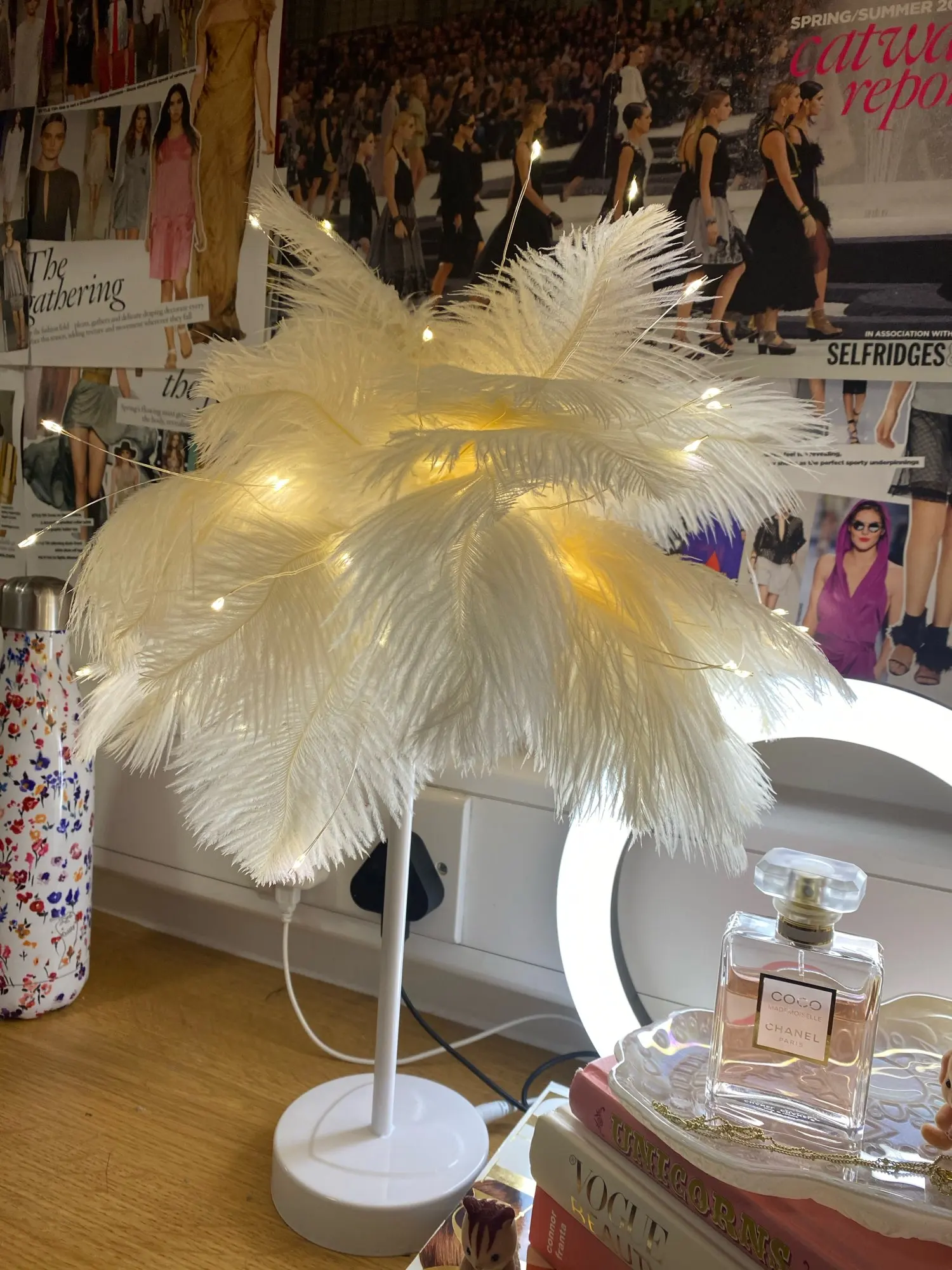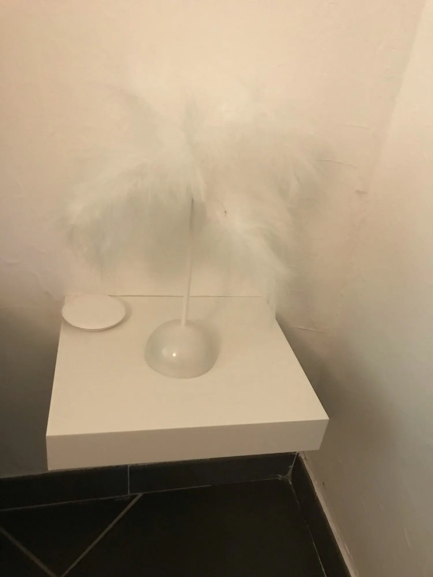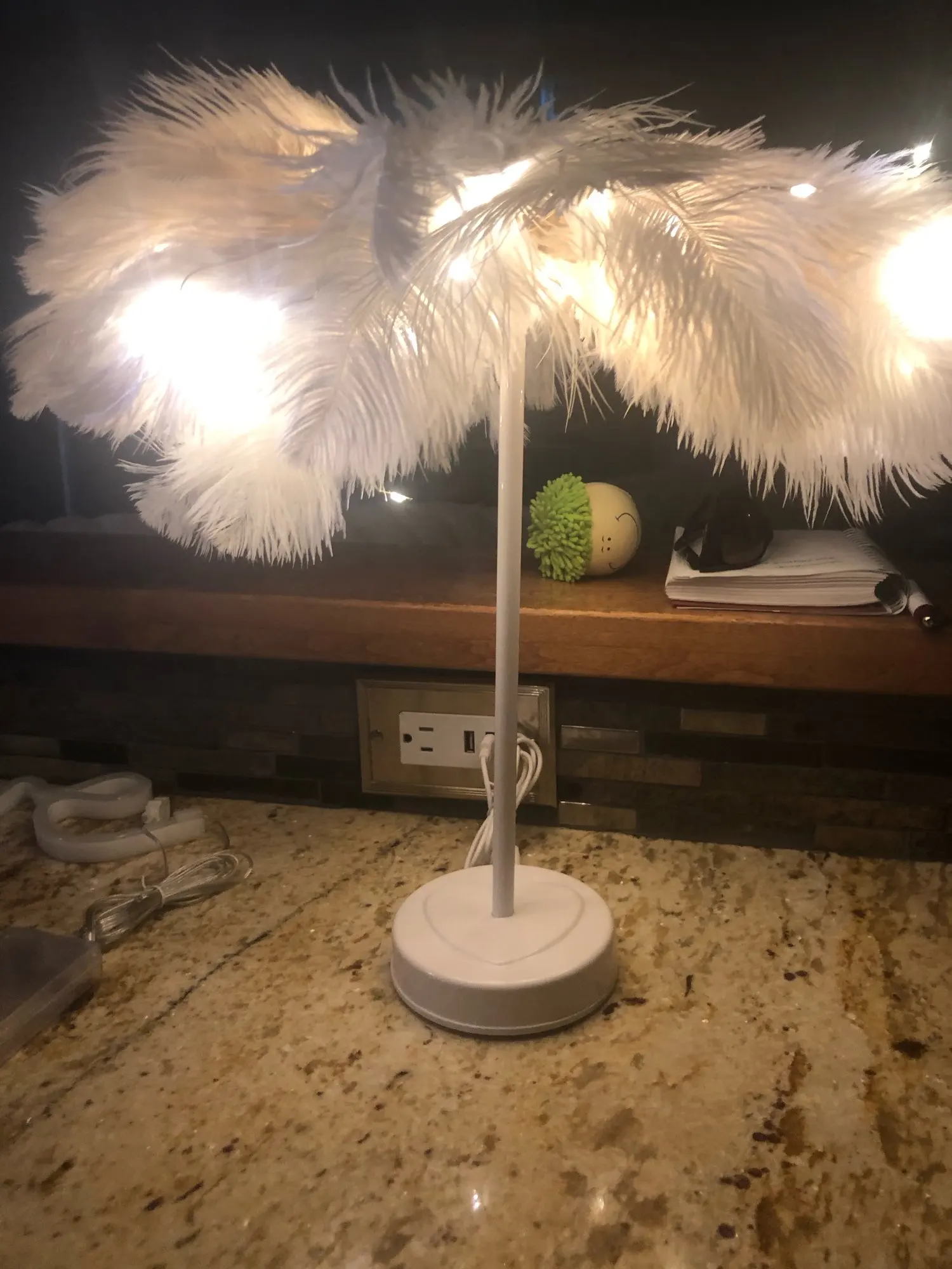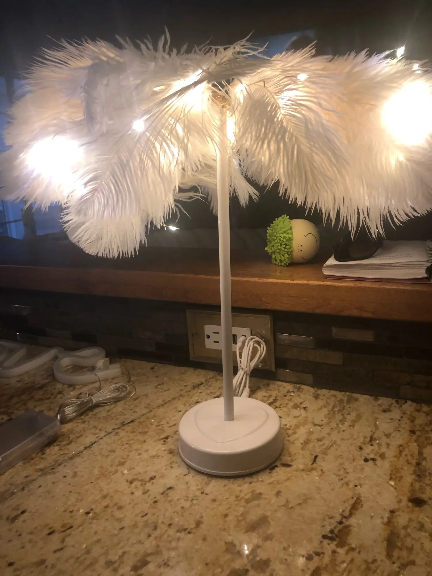 Очень быстрая доставка. Продукт очень красивый, как показано. Хорошо работает и с батареей в лампе. Имеет только некоторый запах от сглаживания и хранения перьев, необходимо распылить легкий аромат для диффузного запаха, который исчезл через несколько дней.