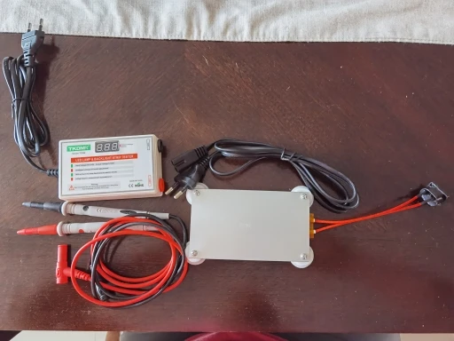 Прибор для проверки лед подсветки с автоматической настройкой. Что довольно таки удобно. Нагревательный элемент, не вызывает доверия. Требует дороботки. Иногда выдает треск, как при пробое, но пока работает. Сколько проживет, покажет время. В целом комплект не плохой, за свои деньги. Продавцу успехов.