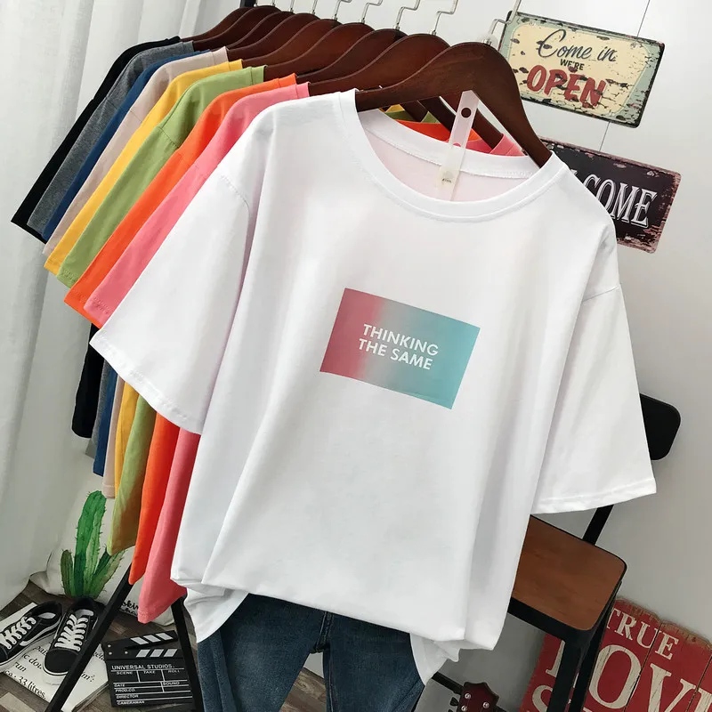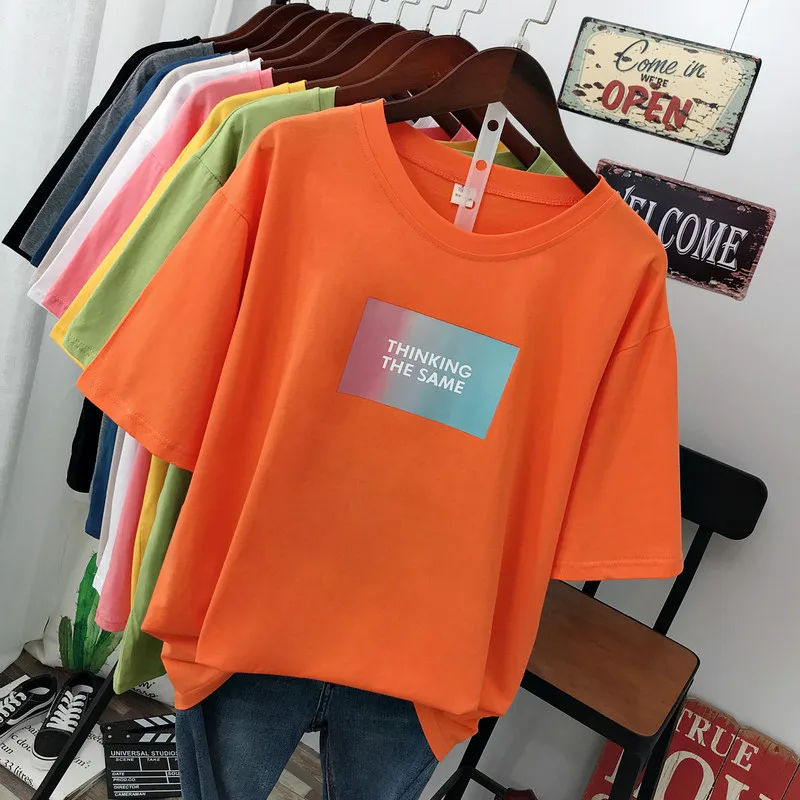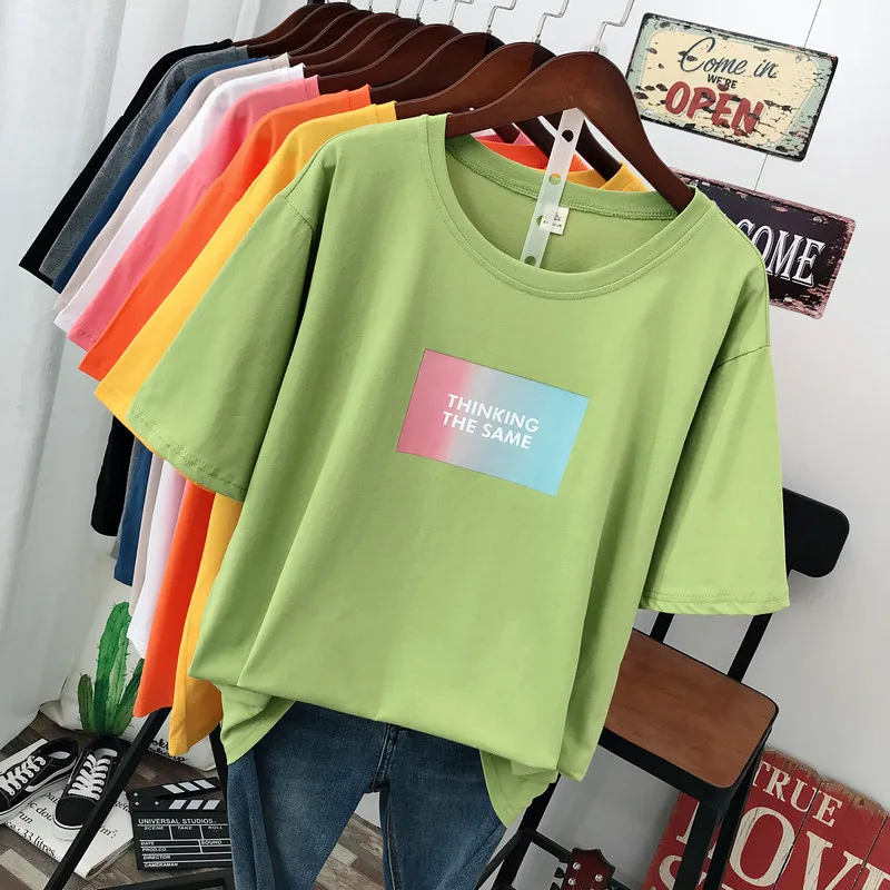 Лето 2021 года, новая уличная мода, повседневная женская футболка, свободные пуловеры с короткими рукавами, 100% хлопок, с буквенным принтом, удобные топы