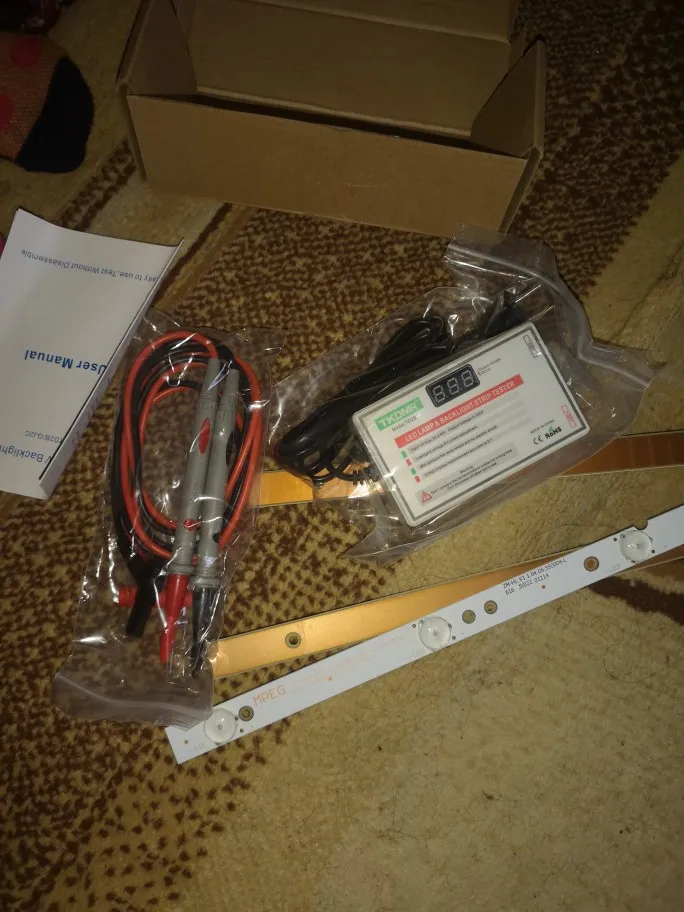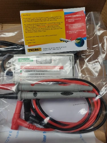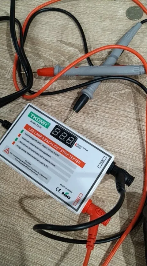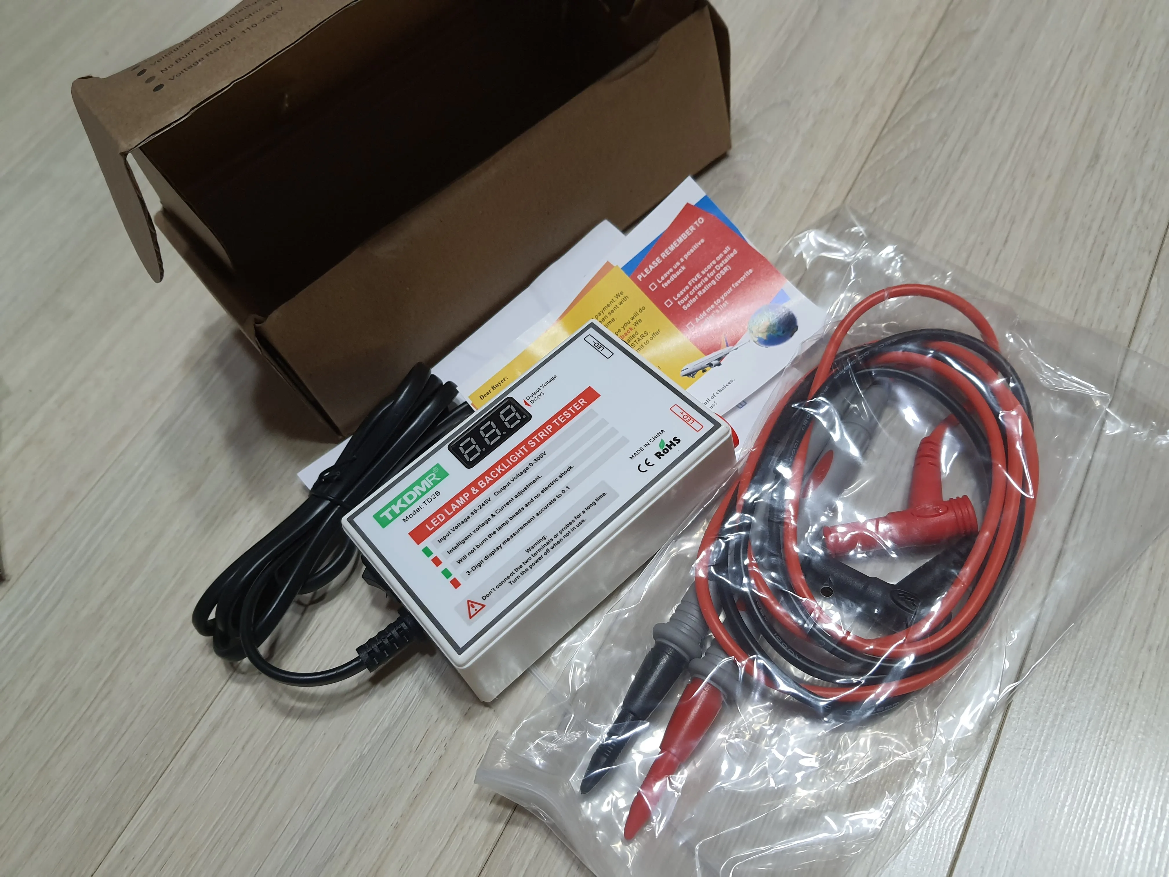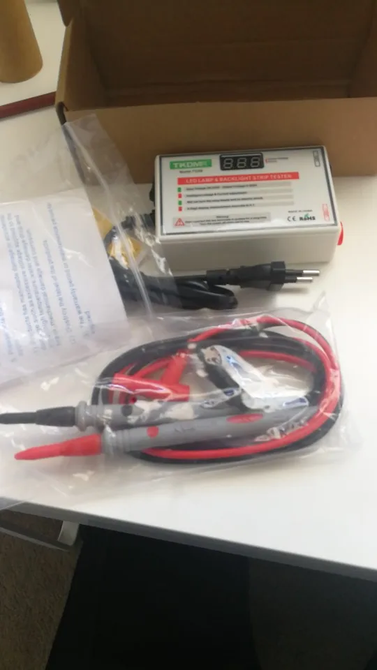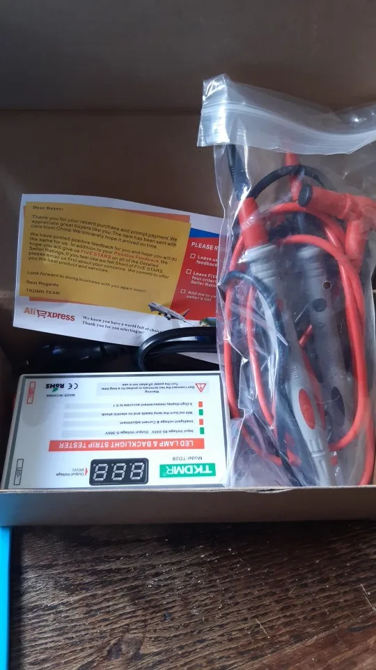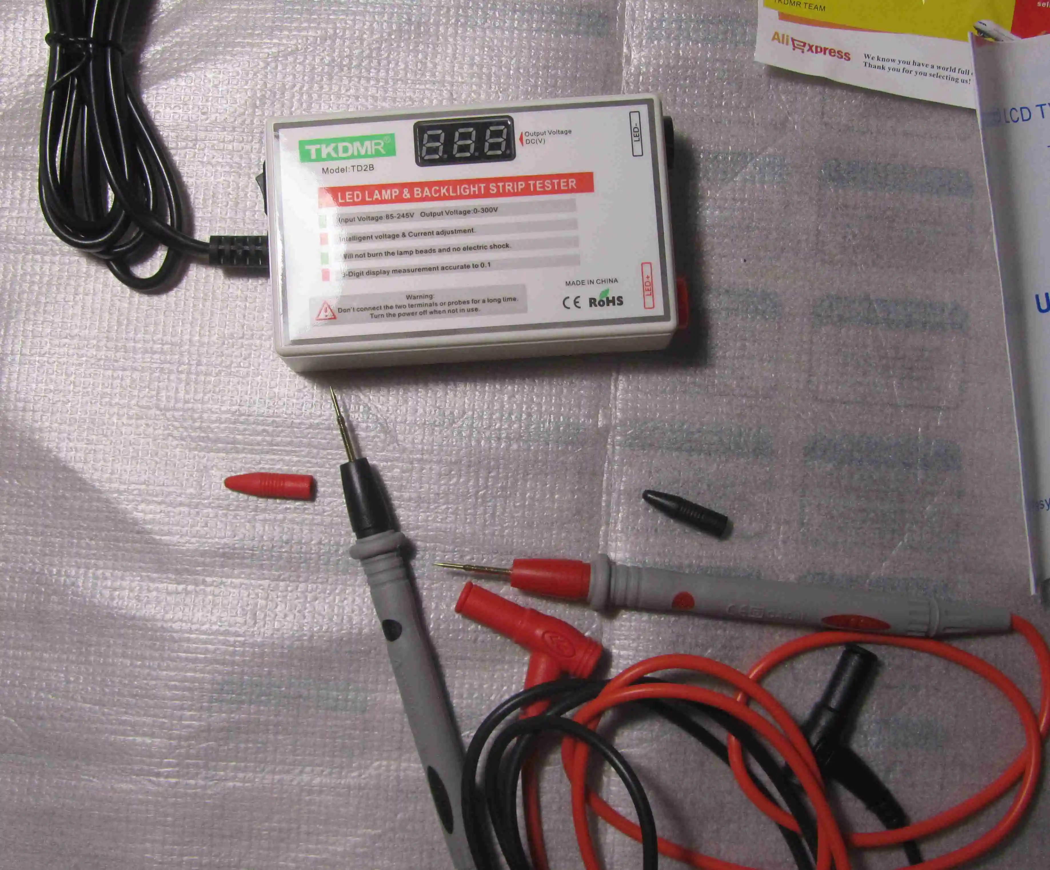 Пришло за 2 дня доставкой iml. Нормальный приборчик, обошёлся чуть более 1000р. Очень гибкий в работе. Линейки от телевизора под рукой не оказалось, но он с лёгкостью зажигает светодиоды по одному и показывает падение напряжения. Неплохие щупы в комплекте. Я остался доволен.