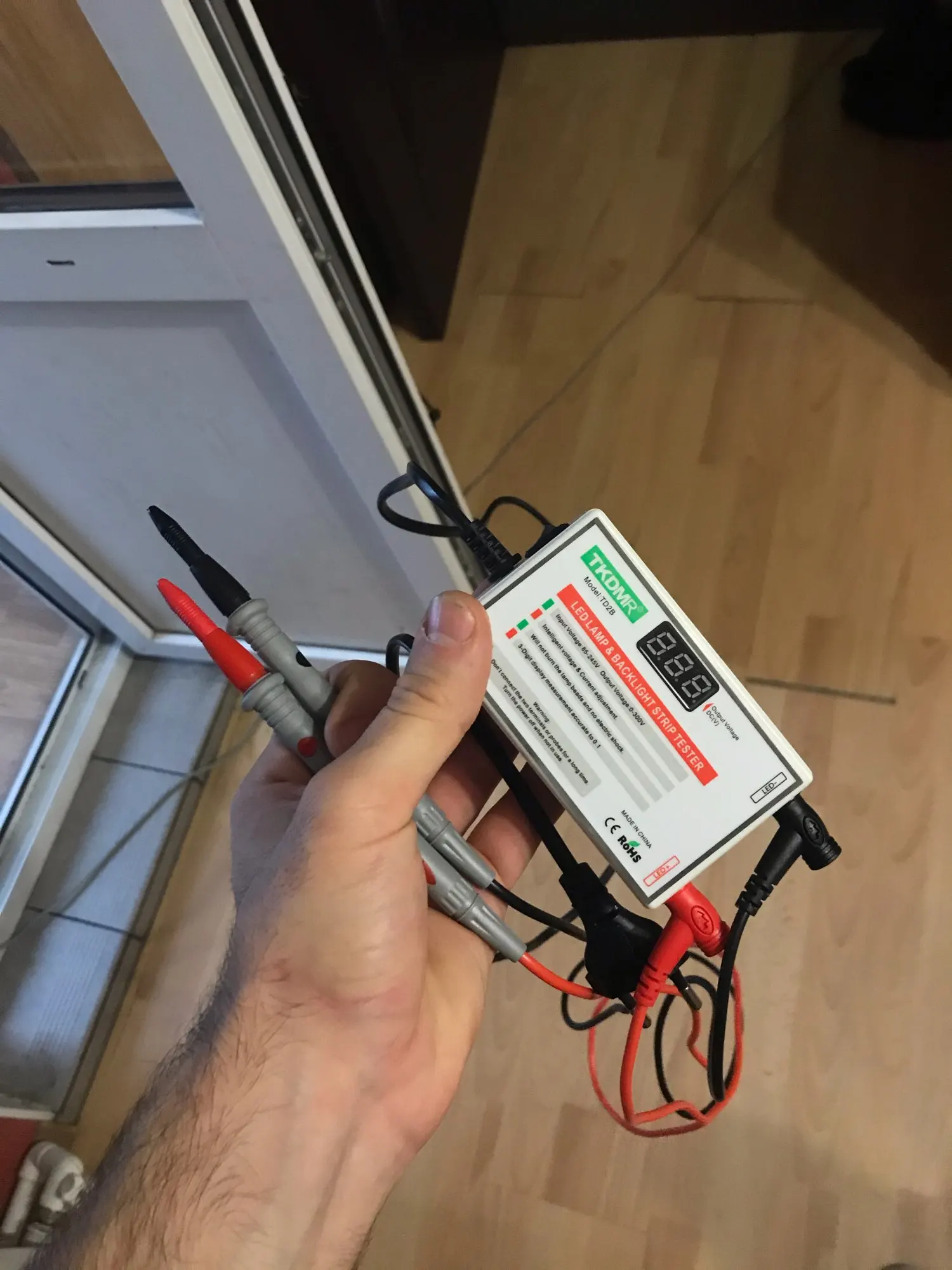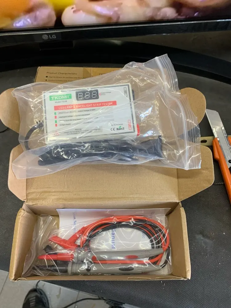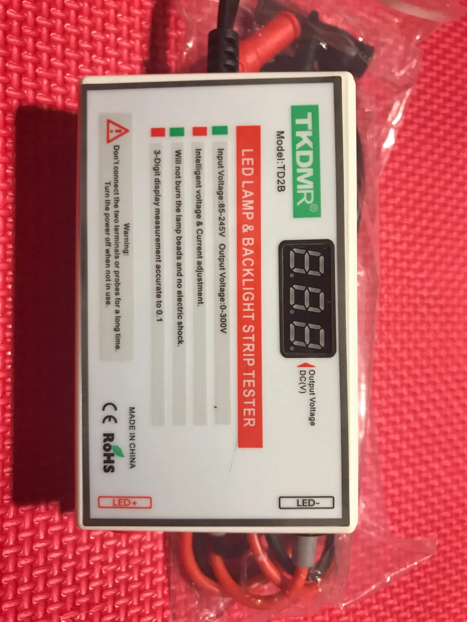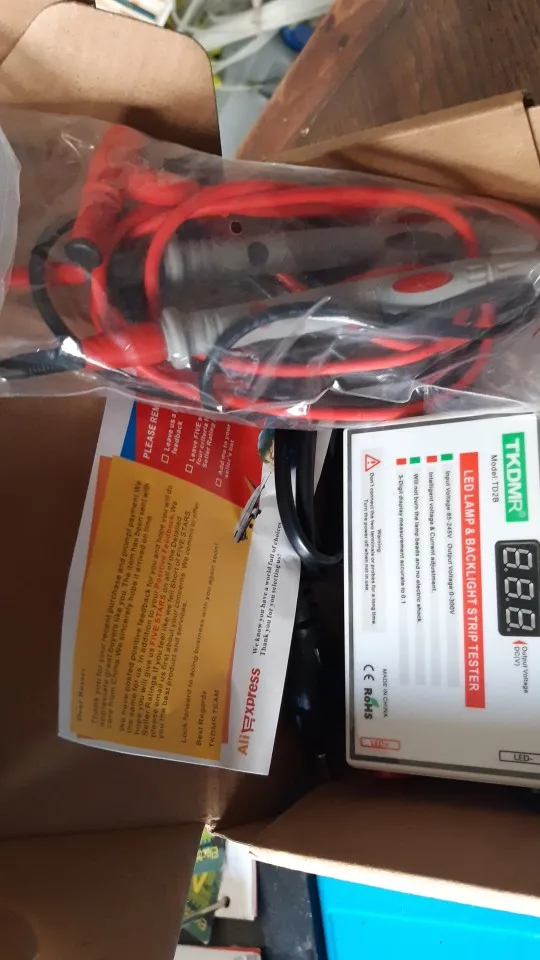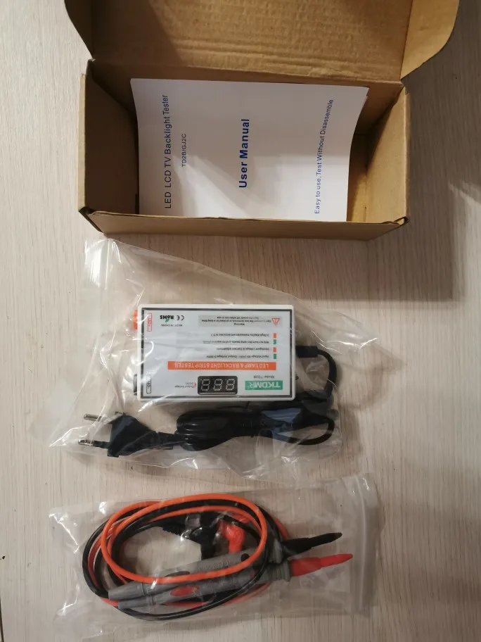 Пришло за 2 дня доставкой iml. Нормальный приборчик, обошёлся чуть более 1000р. Очень гибкий в работе. Линейки от телевизора под рукой не оказалось, но он с лёгкостью зажигает светодиоды по одному и показывает падение напряжения. Неплохие щупы в комплекте. Я остался доволен.