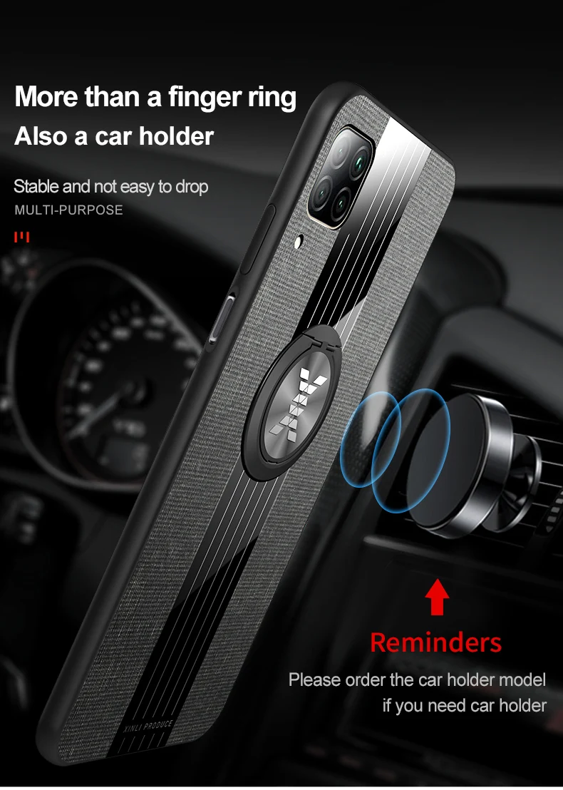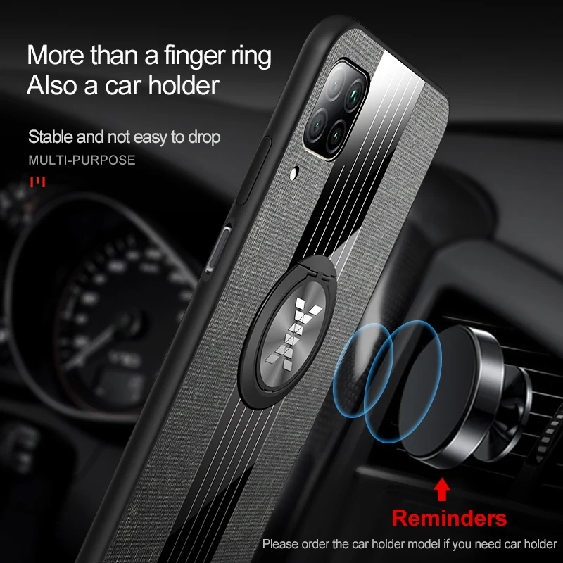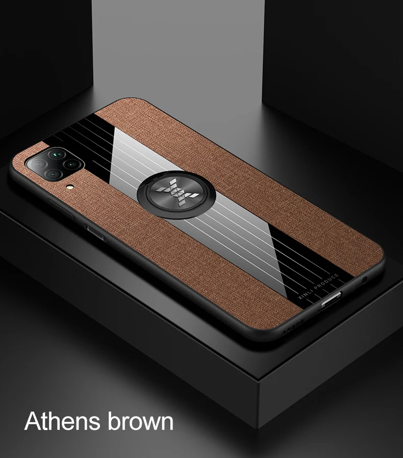 Чехол с кольцом-держателем для Huawei P40 Lite, тканевая текстура, Жесткий Чехол, мягкая рамка, тканевый чехол для телефона Huawei P40 Lite