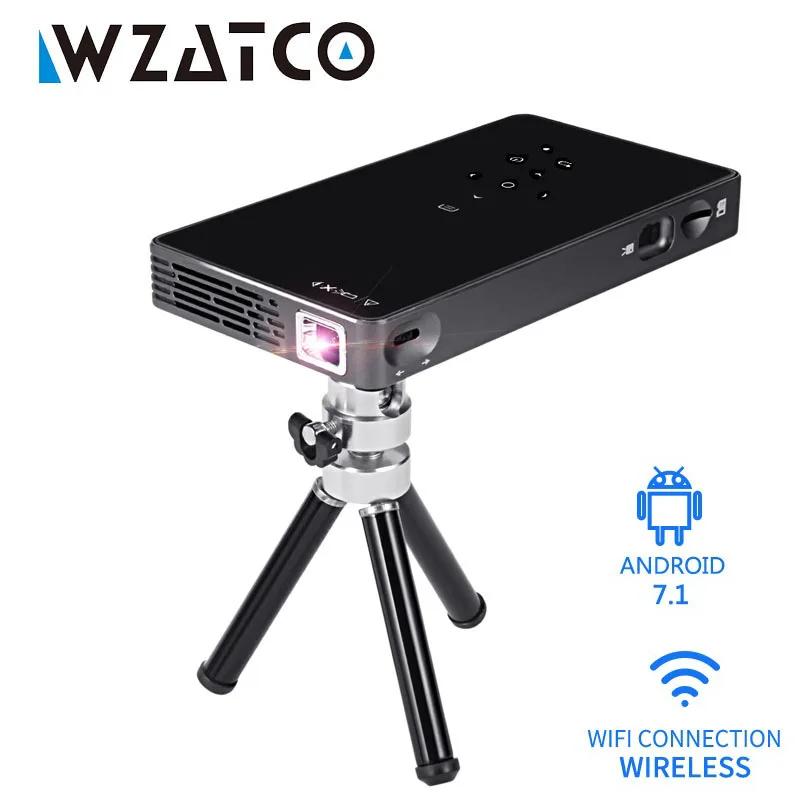 WZATCO CT50S Android 7,1 портативный мини светодиодный проектор