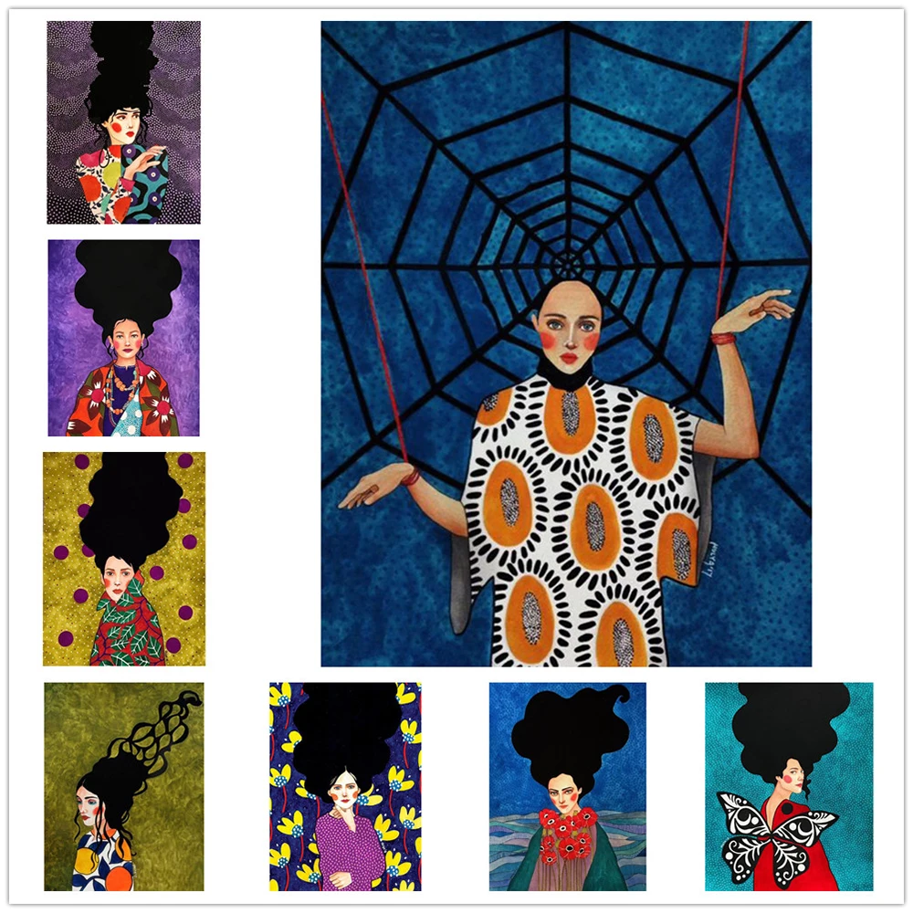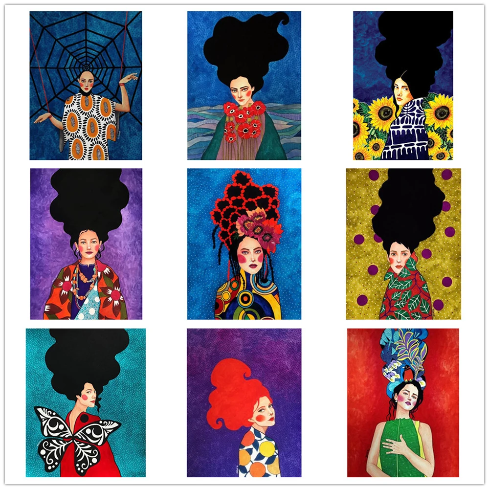 Абстрактная красочная девушка настенная Картина на холсте скандинавский постер цветок волос Куадрос настенные картины для гостиной винтажные без рамки