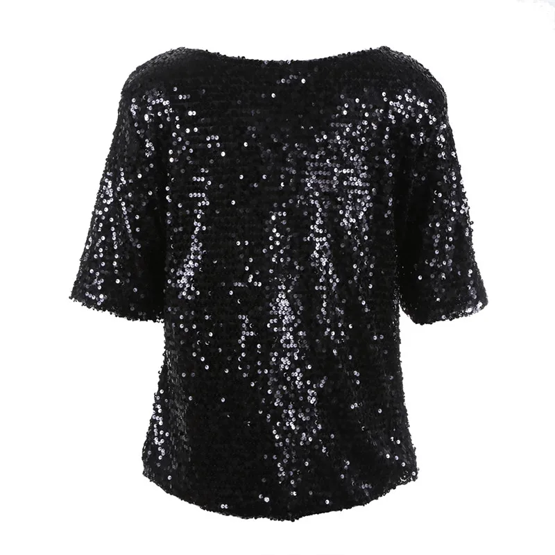 Женская Блестящая футболка с блестками, топы, летняя приталенная че...