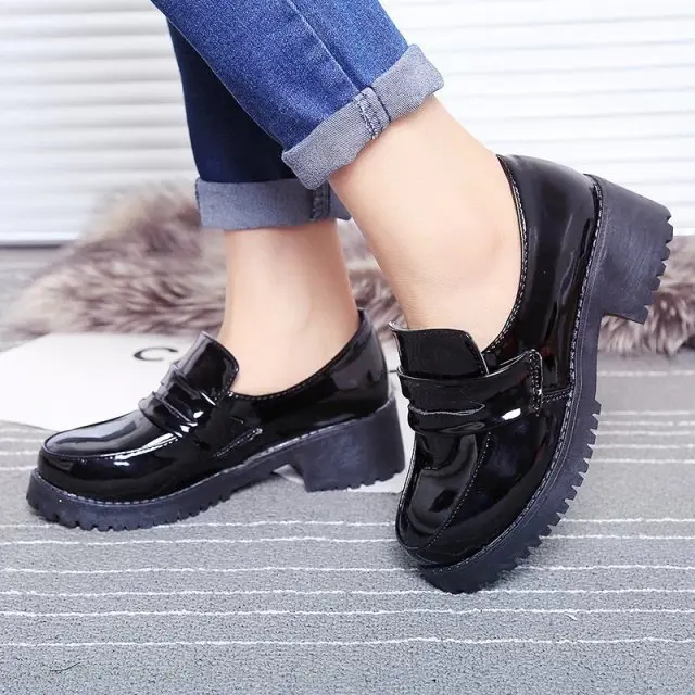 Туфли женские на низком каблуке с круглым носком для школьной формы