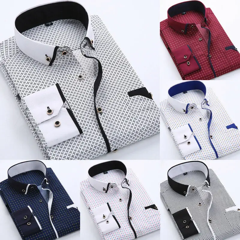 Новая модная мужская Роскошная стильная повседневная приталенная рубашка, повседневные рубашки в горошек с длинным рукавом