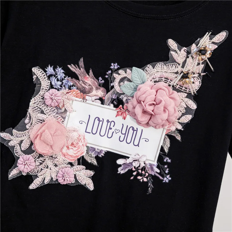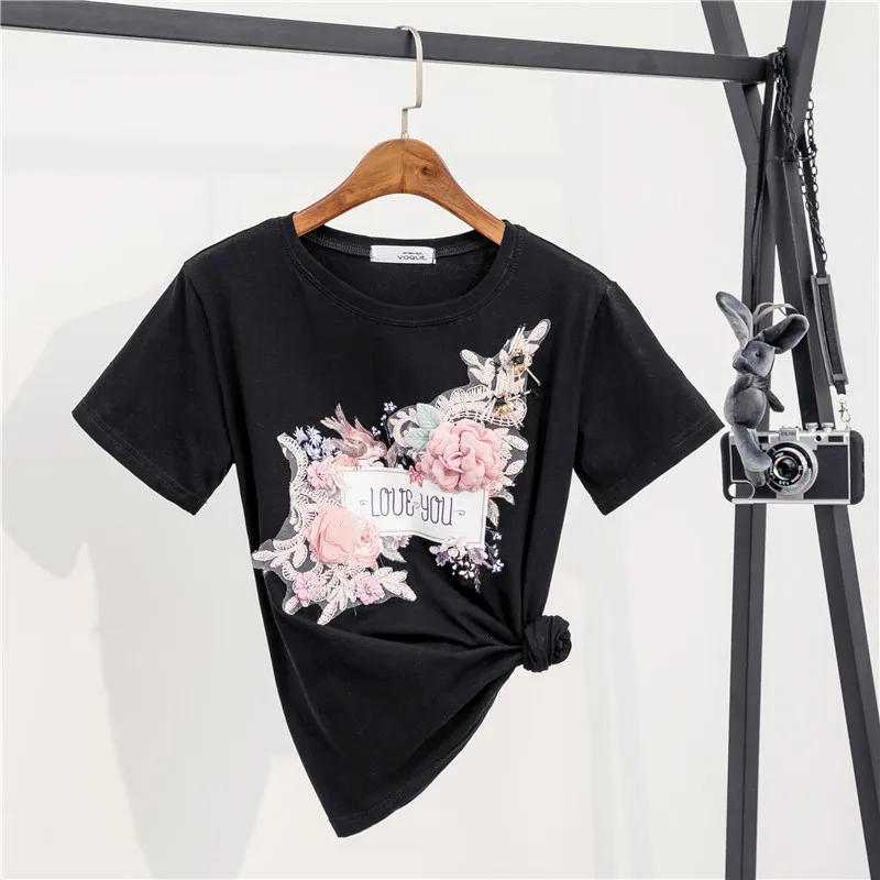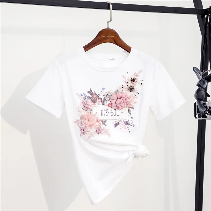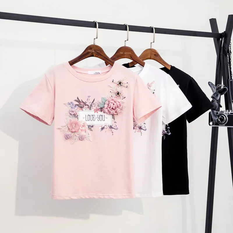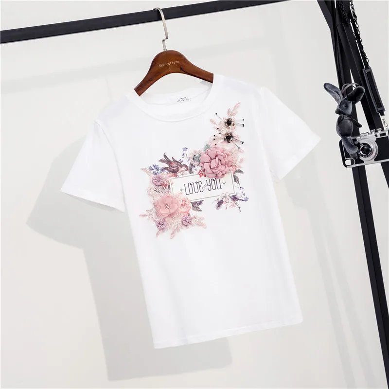 Женский хлопковый топ с 3D цветочной вышивкой, Женская Повседневная...