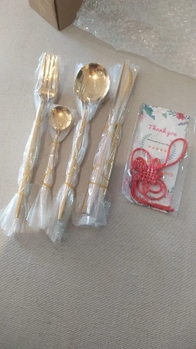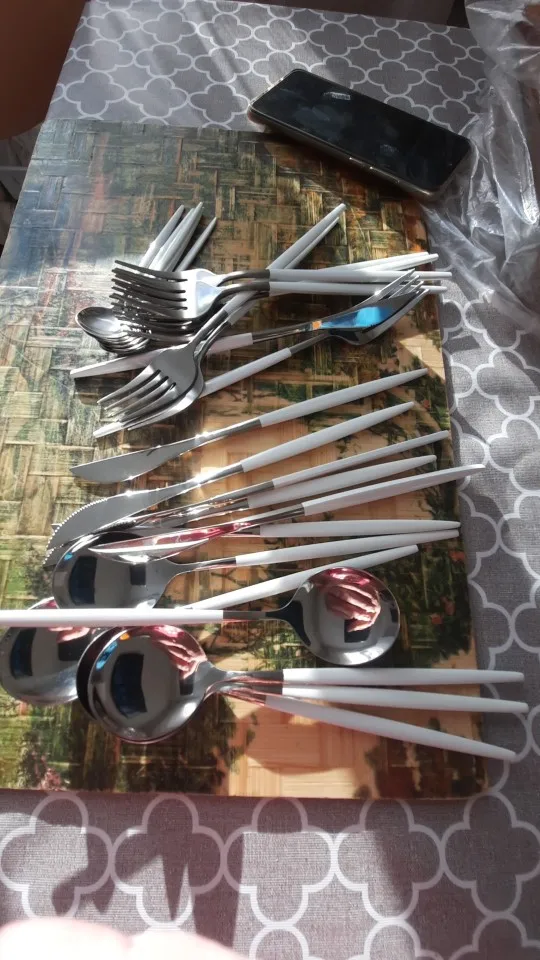 Столовые приборы очень хорошие, это заняло месяц, чтобы добраться до Колумбии. С ними пришел хороший подарок на удачу, очень хорошая деталь от продавца. Люблю их.