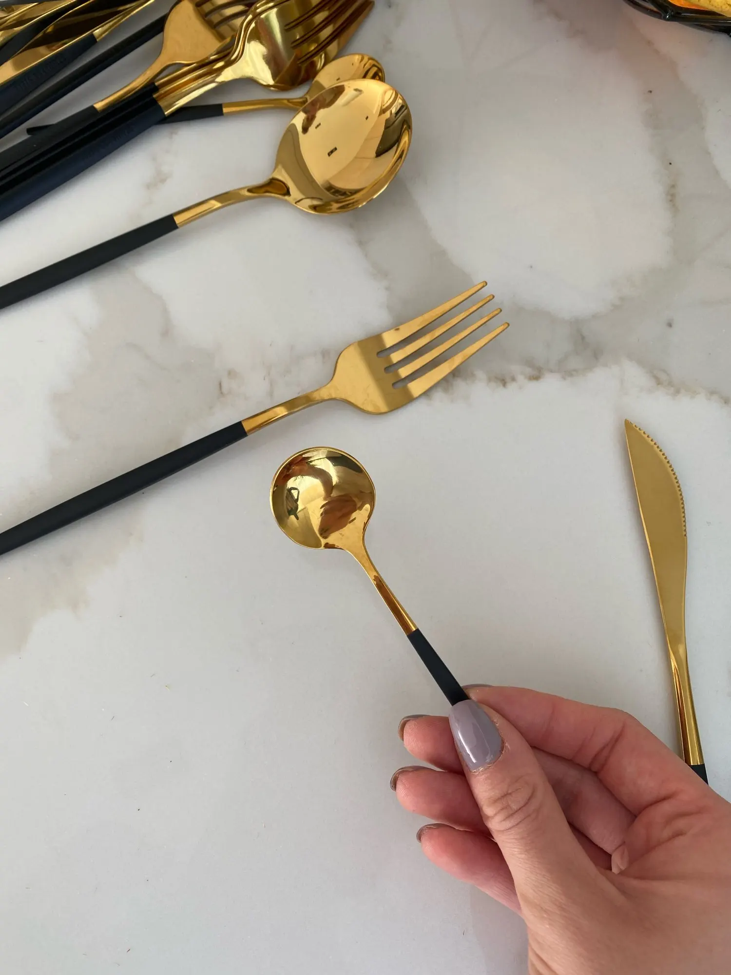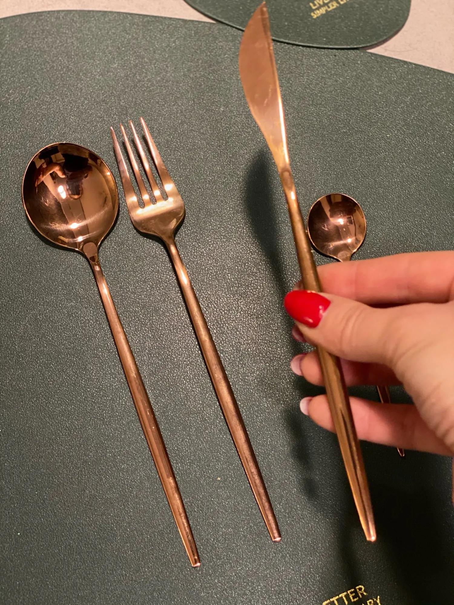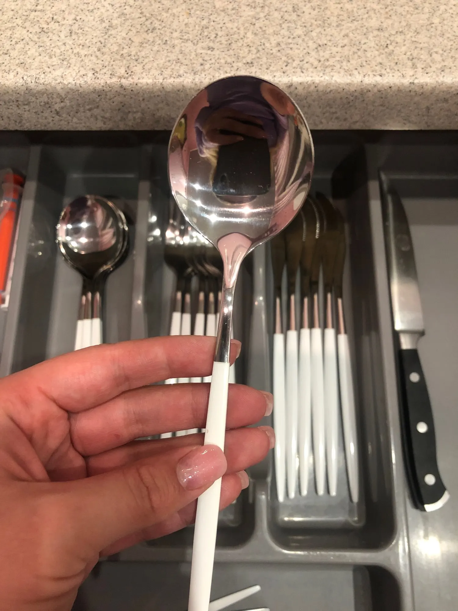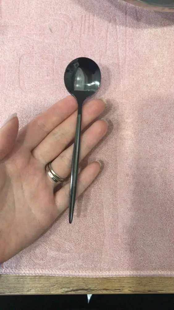 Все супер. Особенно доставка курьером порадовала . Ложка суповая совсем не для супа, как пишут все . Заказывать с покрашенными ручками не стала, т к пользуюсь посудомойкой. Материал тонковат, но не гнётся. Выглядит дорого богато. Посмотрим, как со временем себя поведет