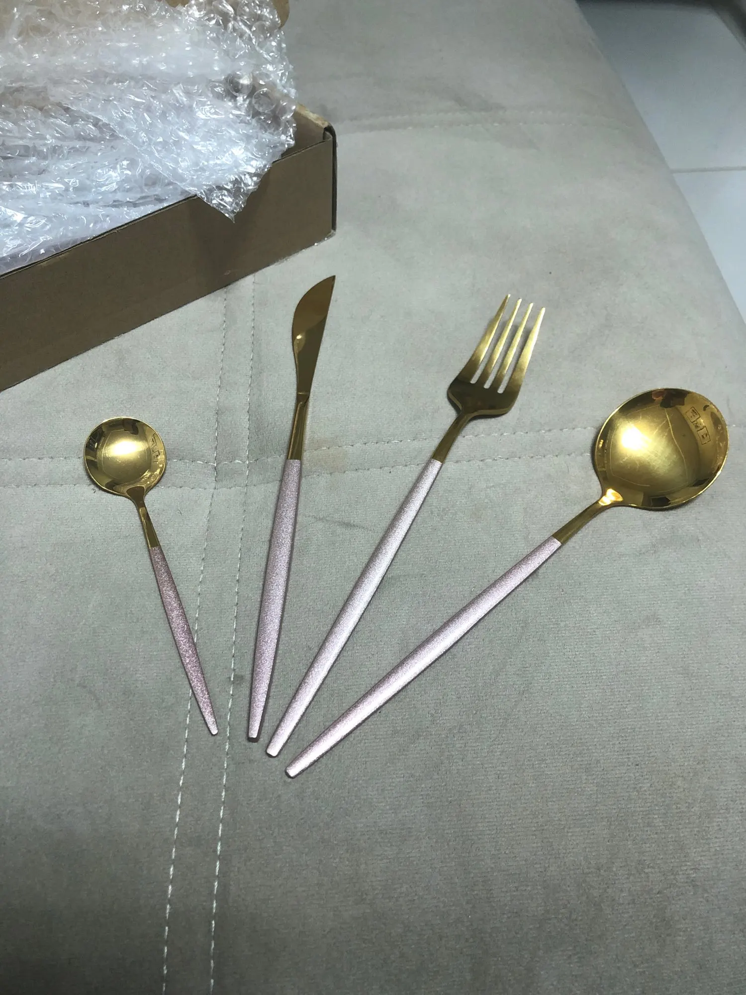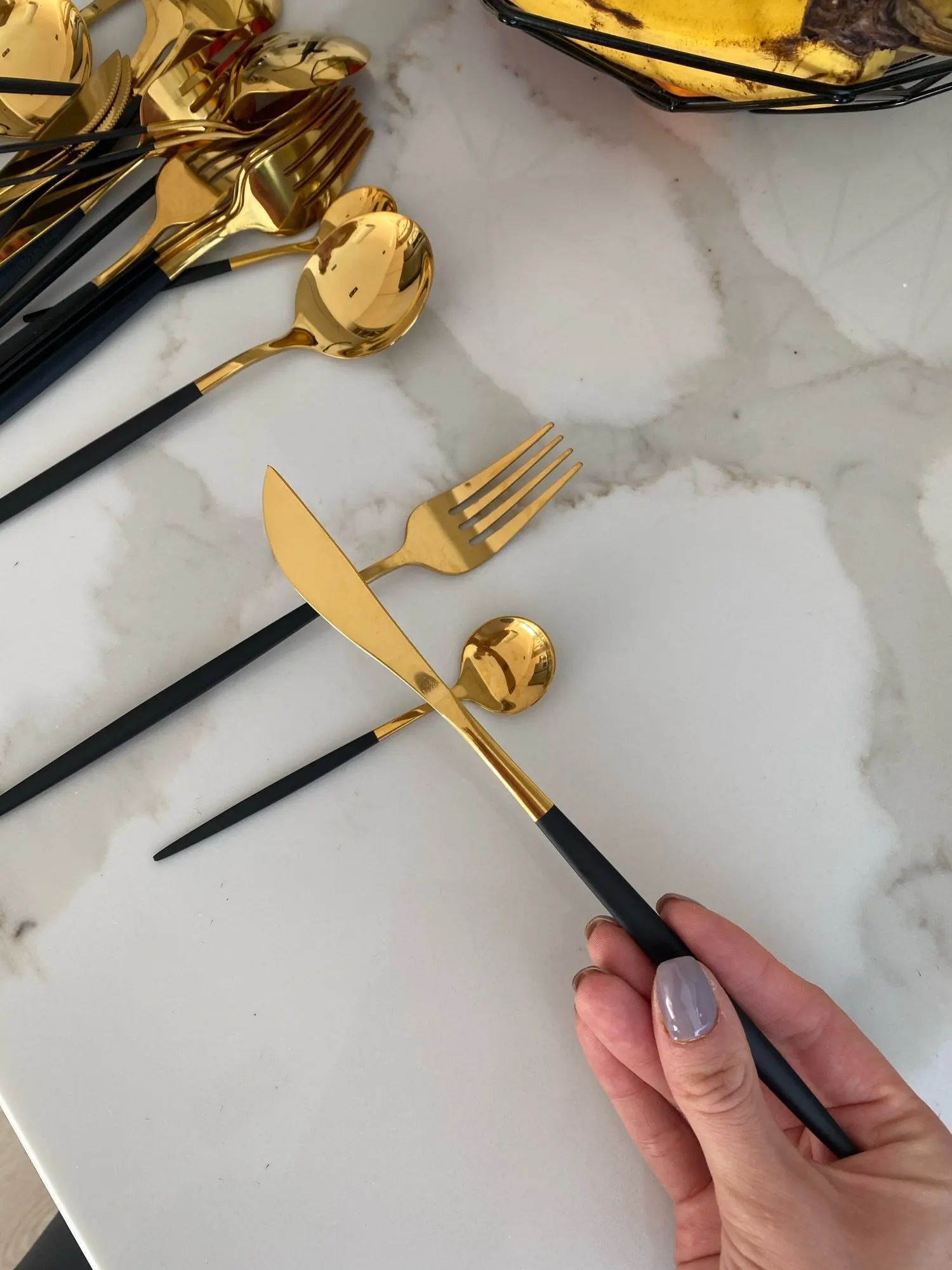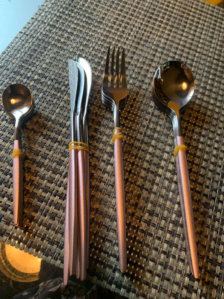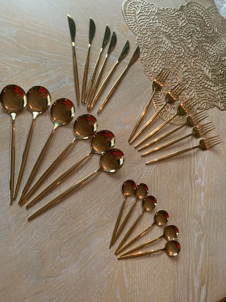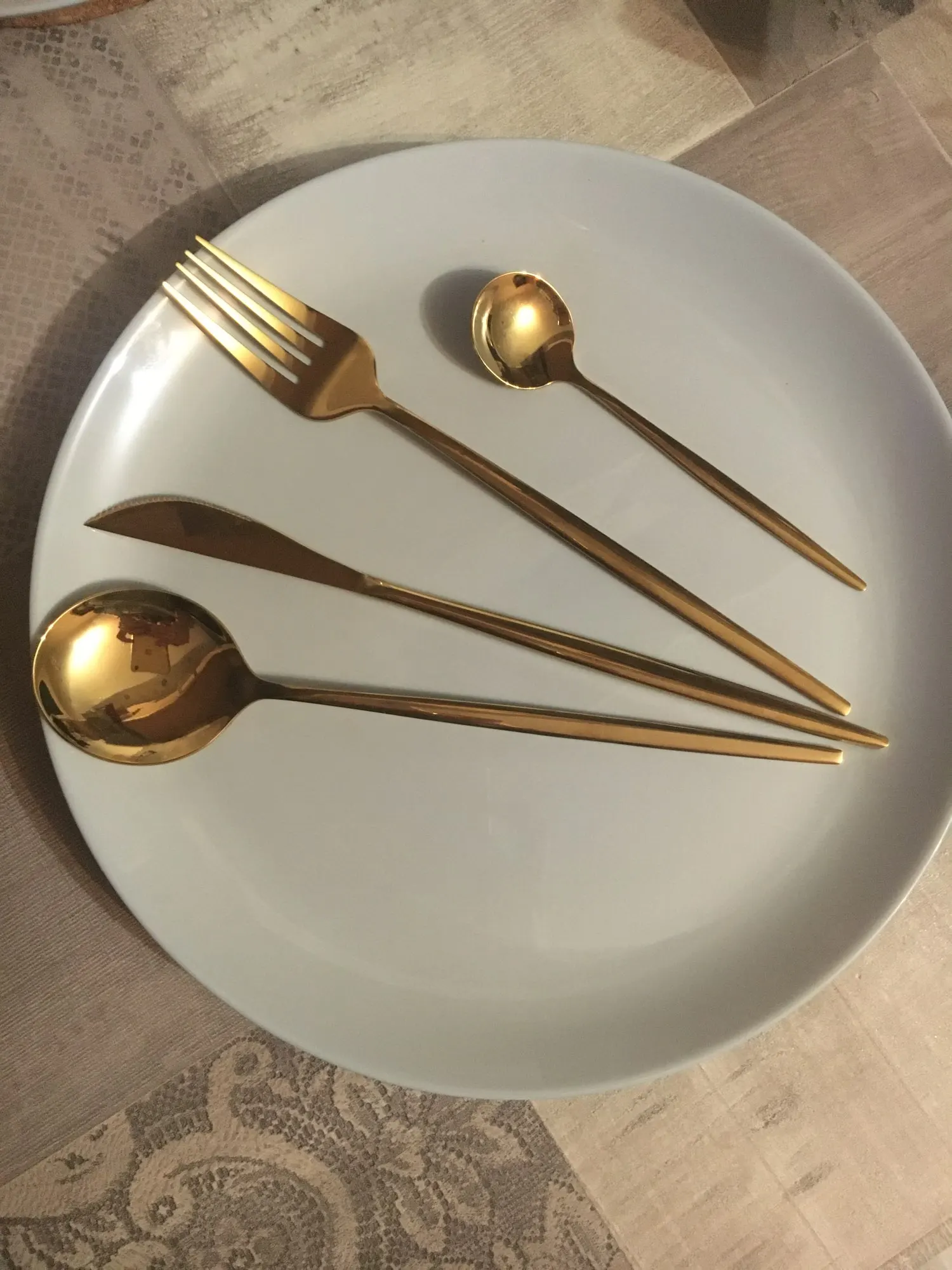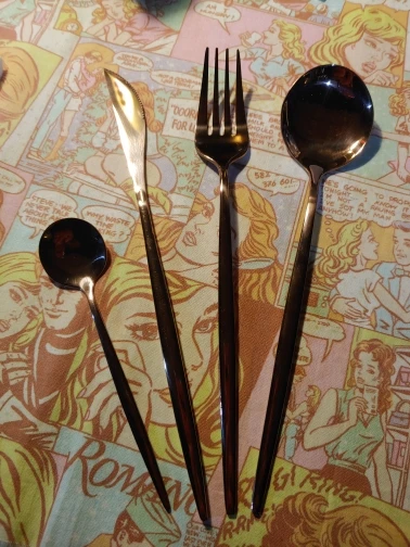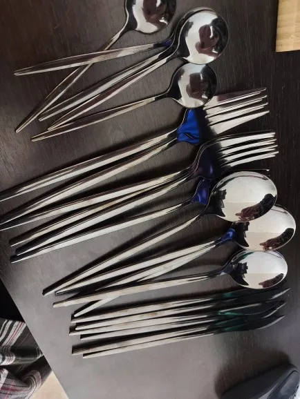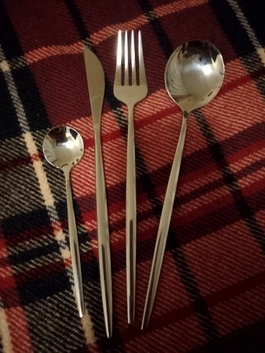 Приборы пришли в погнутом виде, все хлипкие и тонкие, совсем не такие как на фото. есть ими не возможно, потому что они в руке не держатся просто, вилки все очень острые и погнутые. Я очень ждала этот товар, доставка была больше 2 месяцев, а в итоге такое разочарование...