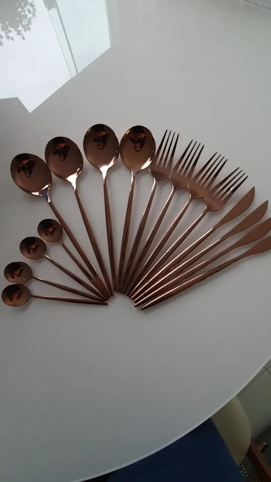Милые столовые приборы. Достойное качество. Маленькие ложки очень маленькие, но говорят, что кофейные ложки. Они блестящие! Вилки кажутся немного светлыми, но ложки-хороший вес! В целом я доволен! Доставка в США была около 3 недель.