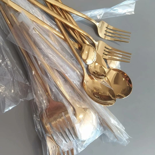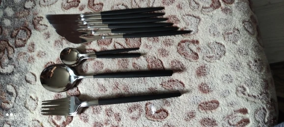 Столовые приборы красивые. Хорошо упакованы индивидуально без царапин. И даже прислал деликатный подарок.