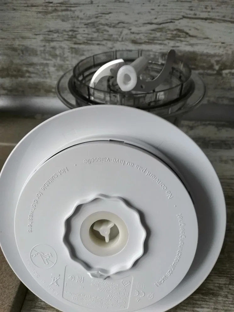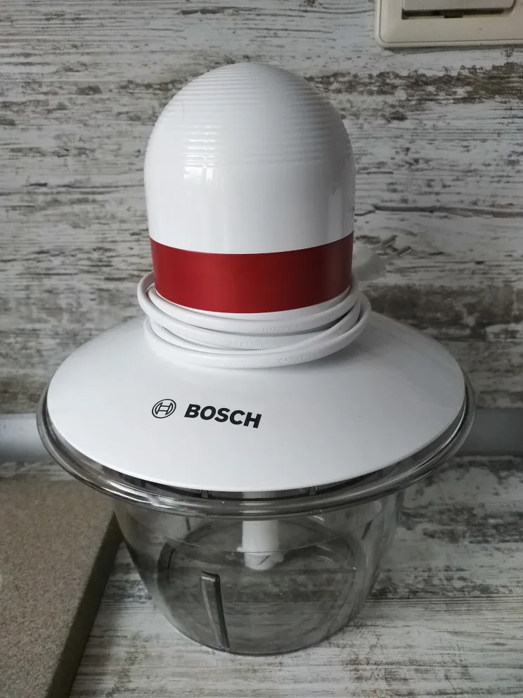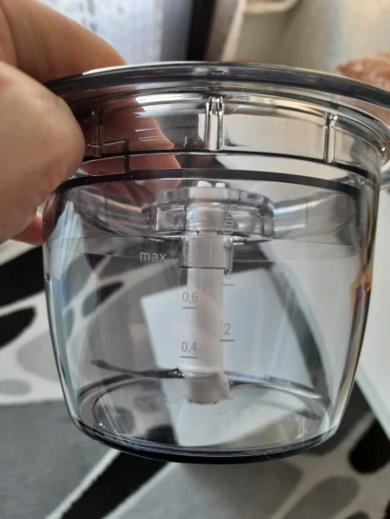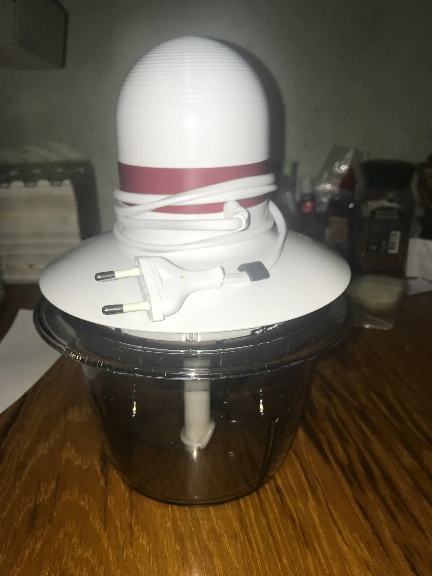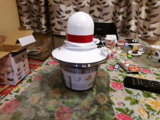 Отличный измельчитель, не взбивает как блендер, а именно бьет мелко (это было важно), достаточно мощный, пластик чаши очень хорошего качества на 1 литр примерно, управление - нажать и держать верхнюю часть, кнопки вкл/выкл нет, но это абсолютно не влияет на общее приятное впечатление от устройства в целом)))